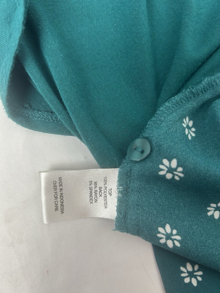 Fortune + Ivy women?s blouse in size Small. Teal/turquoise with white floral/daisy print. Lightweight and easy to wear with a relaxed drape.