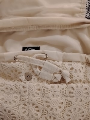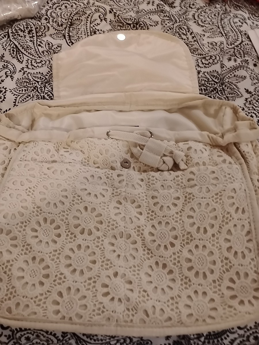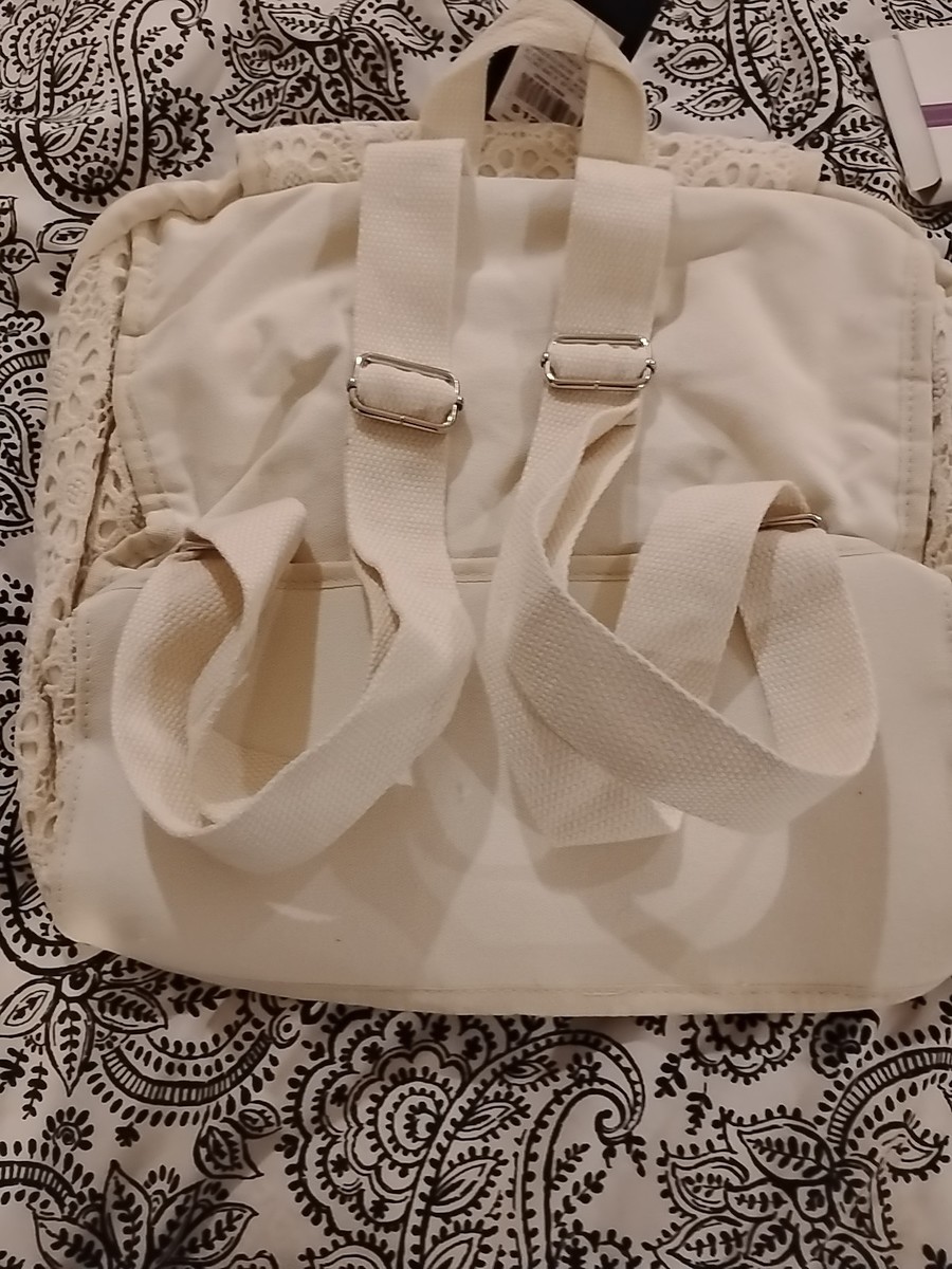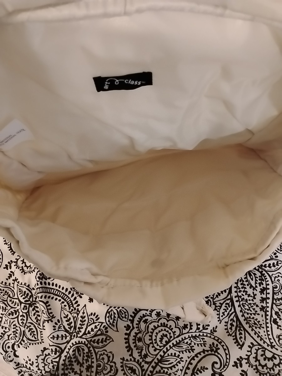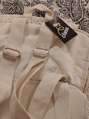This Art Class backpack is perfect for women who want to add a touch of style to their beach themed outfits. The drawstring closure and canvas exterior material make it both durable and convenient to use. The backpack is brand new with tags and features a stylish camouflage pattern with a peace character design.