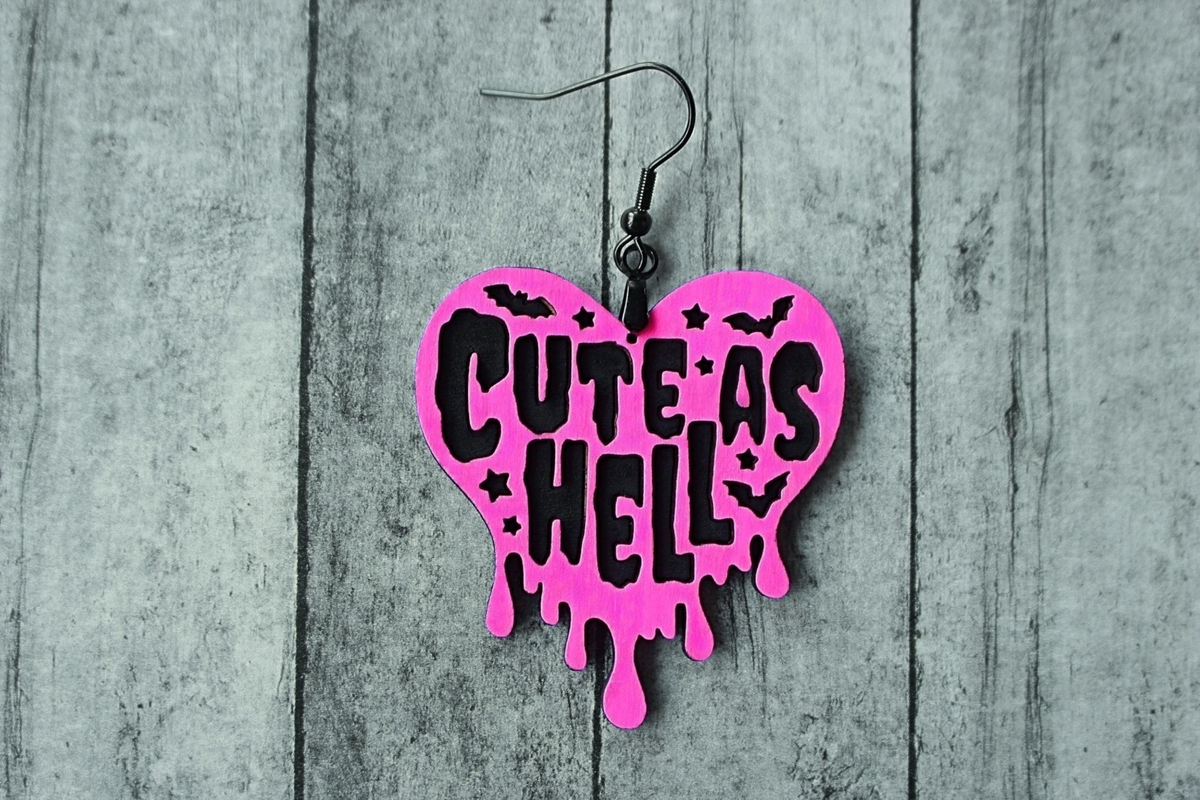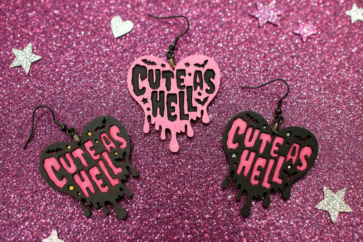 Cute as Hell Heart Shaped Earrings, Pink and and similar items