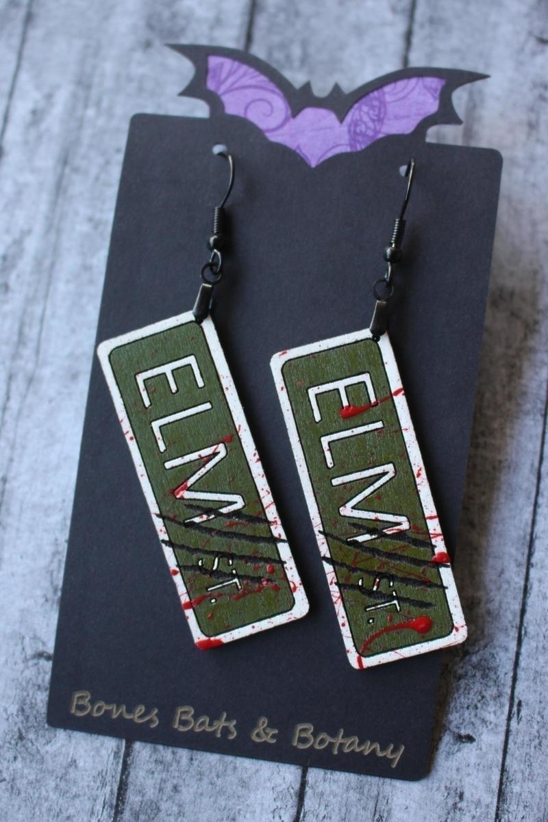 Street Sign Horror Earrings, Handmade 80s Movie Jewelry, Cult Classic Jewelry