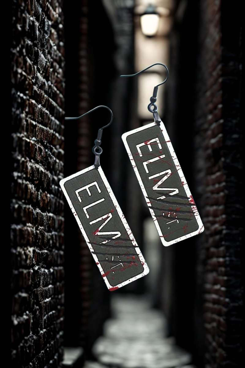 Step into the haunting allure of horror nostalgia with our Street Sign Earrings. Each earring captures the chilling essence of this legendary street. Crafted with meticulous attention to detail, these earrings aren't just accessories—they're an invitation to explore the spine-tingling thrill of classic horror. You'll find the perfect balance of eerie and elegance, making it easy to sport a piece of horror history. Perfect for horror fans or anyone looking to add a touch of macabre to their ensemble, these earrings promise to awaken your style...and maybe a few nightmares. Perfect for Christmas gifts, Birthday gifts of a gift for yourself, transform your accessory game and dare to dream with these unique tributes to one of the classics.