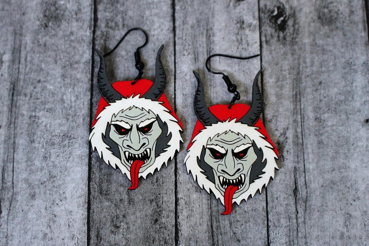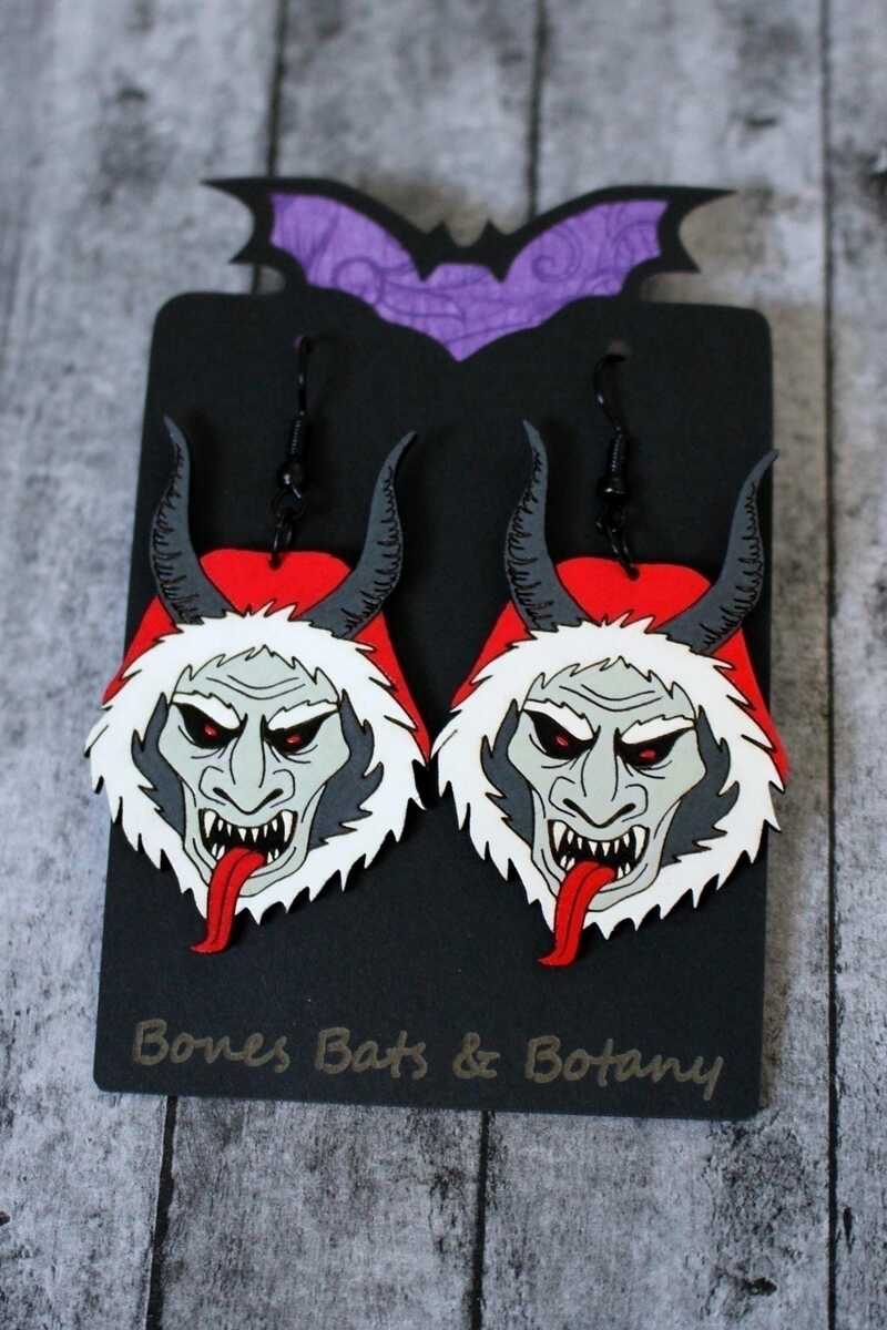 Krampus Earrings, Unique Horror Jewelry, Gothic Macabre Accessory Christmas Gift