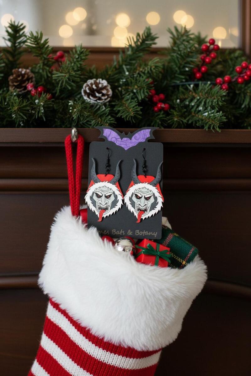 Our Krampus Earrings bring a unique twist to the enchanting world of holiday accessories. Crafted with exquisite attention to detail, these horror jewelry pieces capture the mischievous spirit of Krampus, perfect for those who wish to celebrate the season with a touch of the unconventional. The intricate design reflects the mythical creatureโs features, creating an alluring contrast with traditional holiday imagery. Worn as a bold statement or a subtle whisper of intrigue, these earrings embody a delightful blend of festivity and the fantastical. If you're seeking a Christmas gift that's as enchanting as it is unexpected, look no further. The Krampus Earrings promise to add a hint of mystery and magic to your holiday ensemble, dazzling all who encounter them. Unwrap a piece of gothic glamor this season and let them steal the spotlight at any festive gathering.