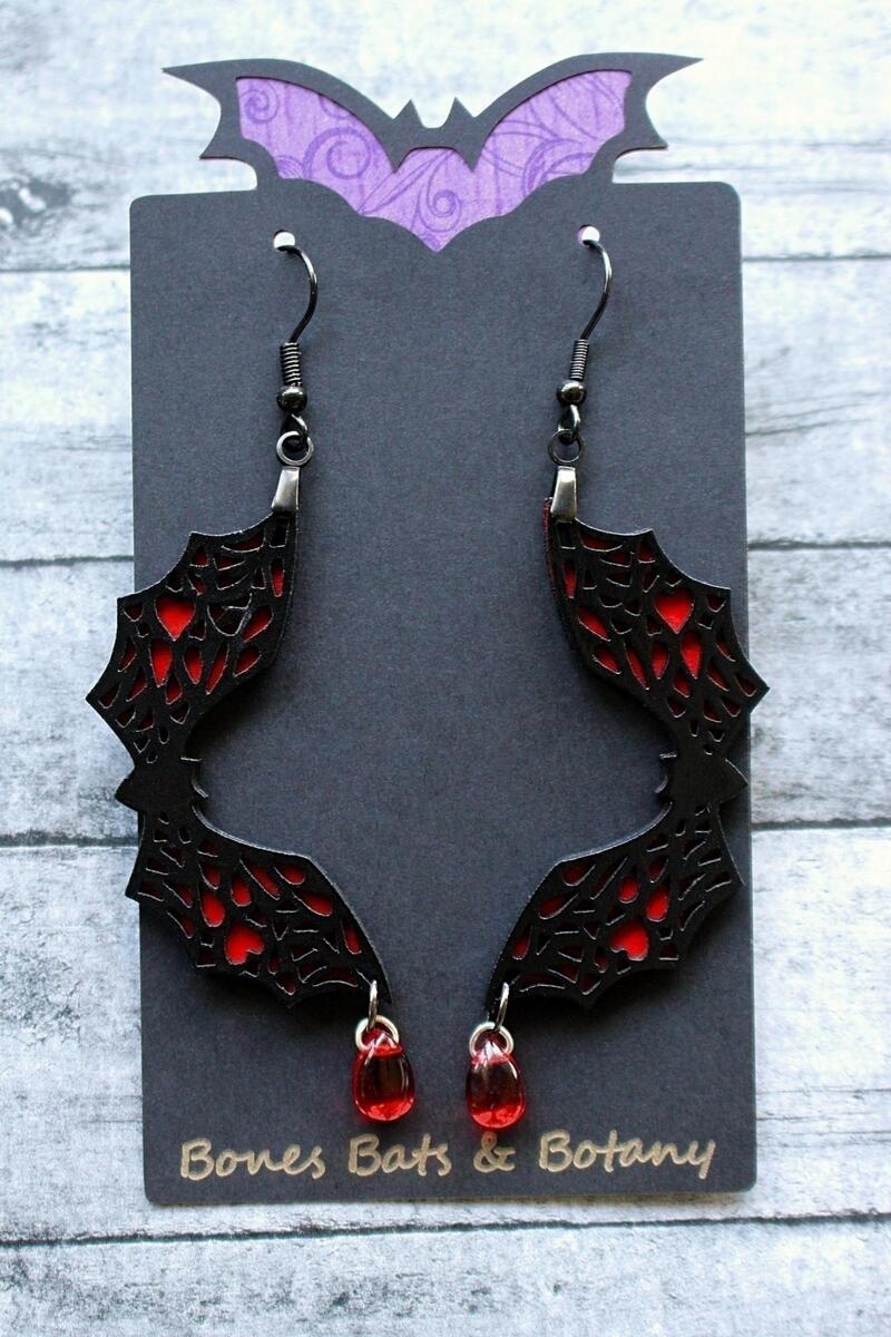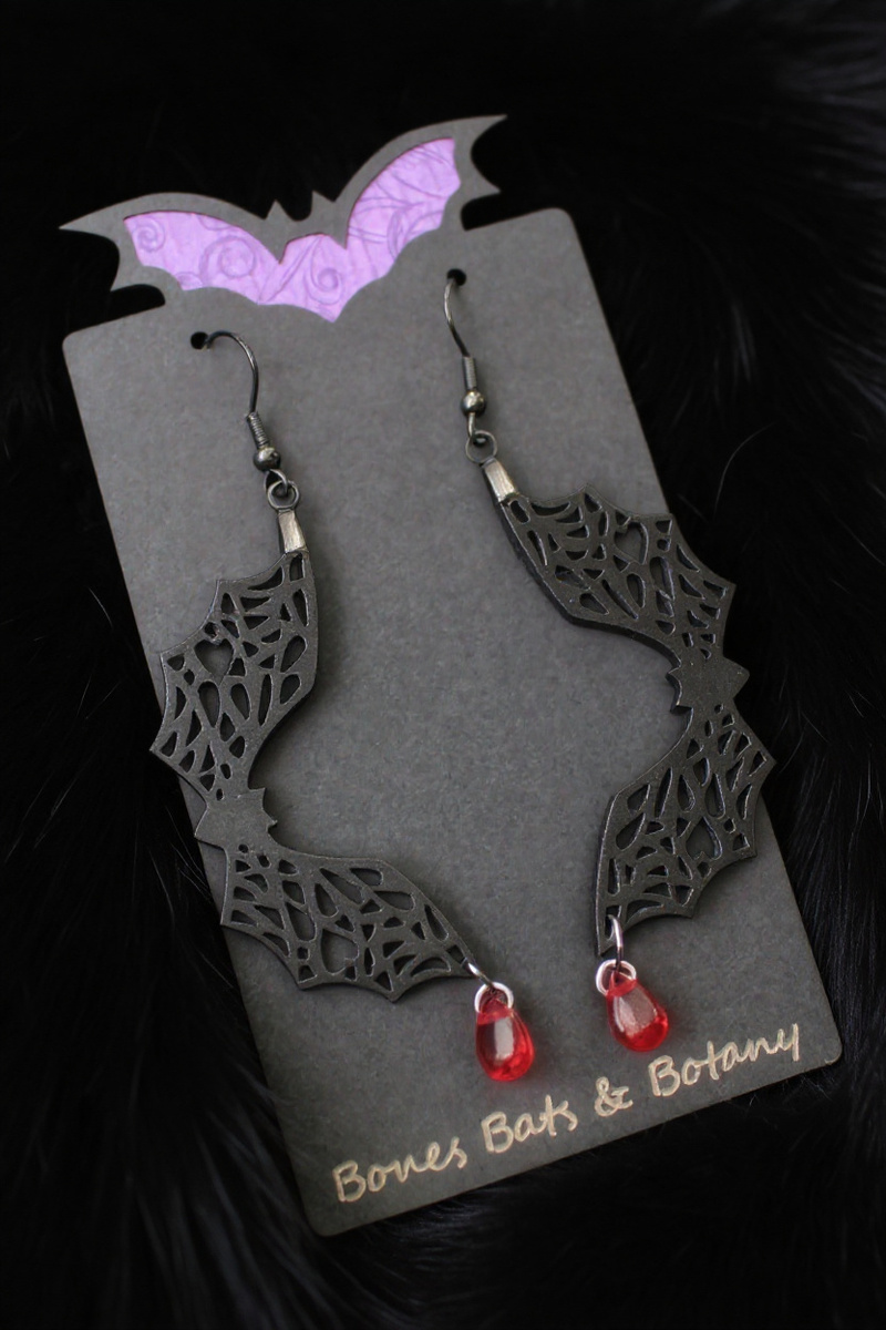 Handmade Lace Bat Earrings, Spooky Blood and similar items
