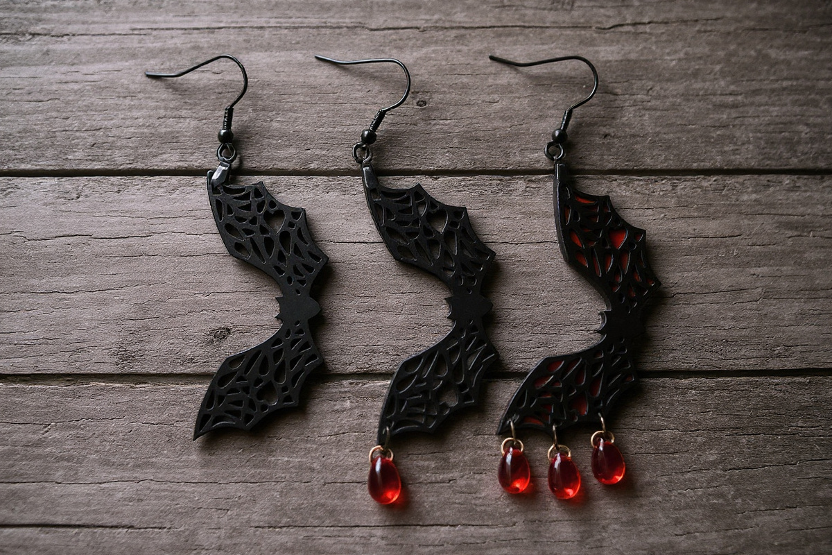 Handmade Lace Bat Earrings, Spooky Blood Drop Earrings, Horror Gothic Jewelry