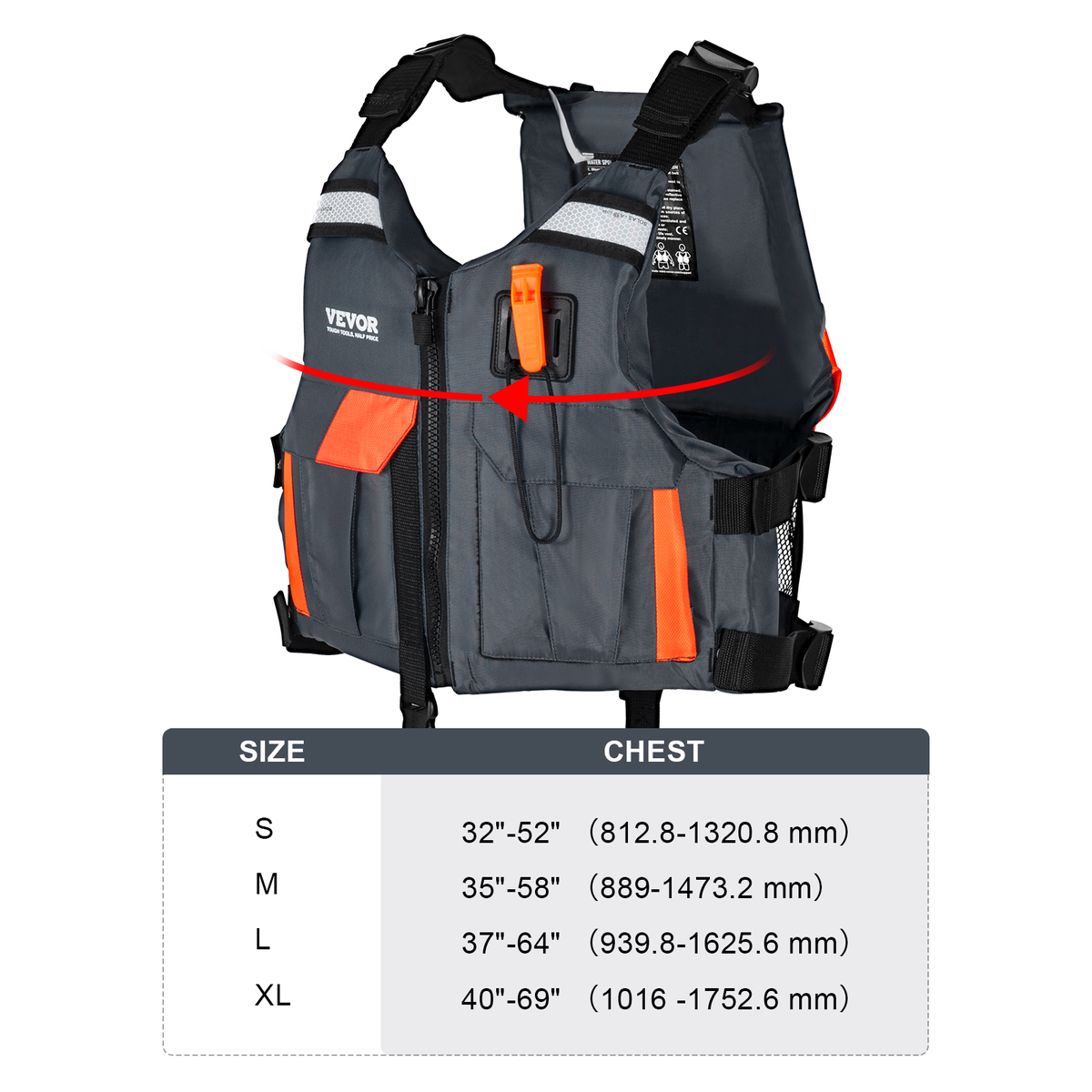 VEVOR Life Vest for Watersports (PFD), Life Jacket with Nylon & 85N Buoyancy