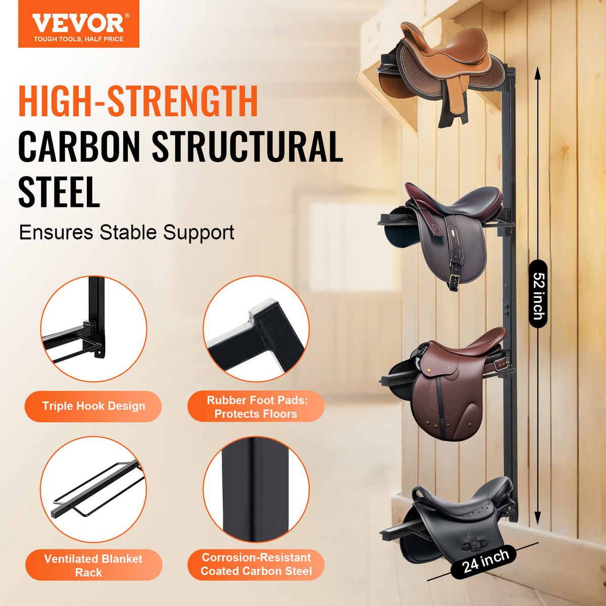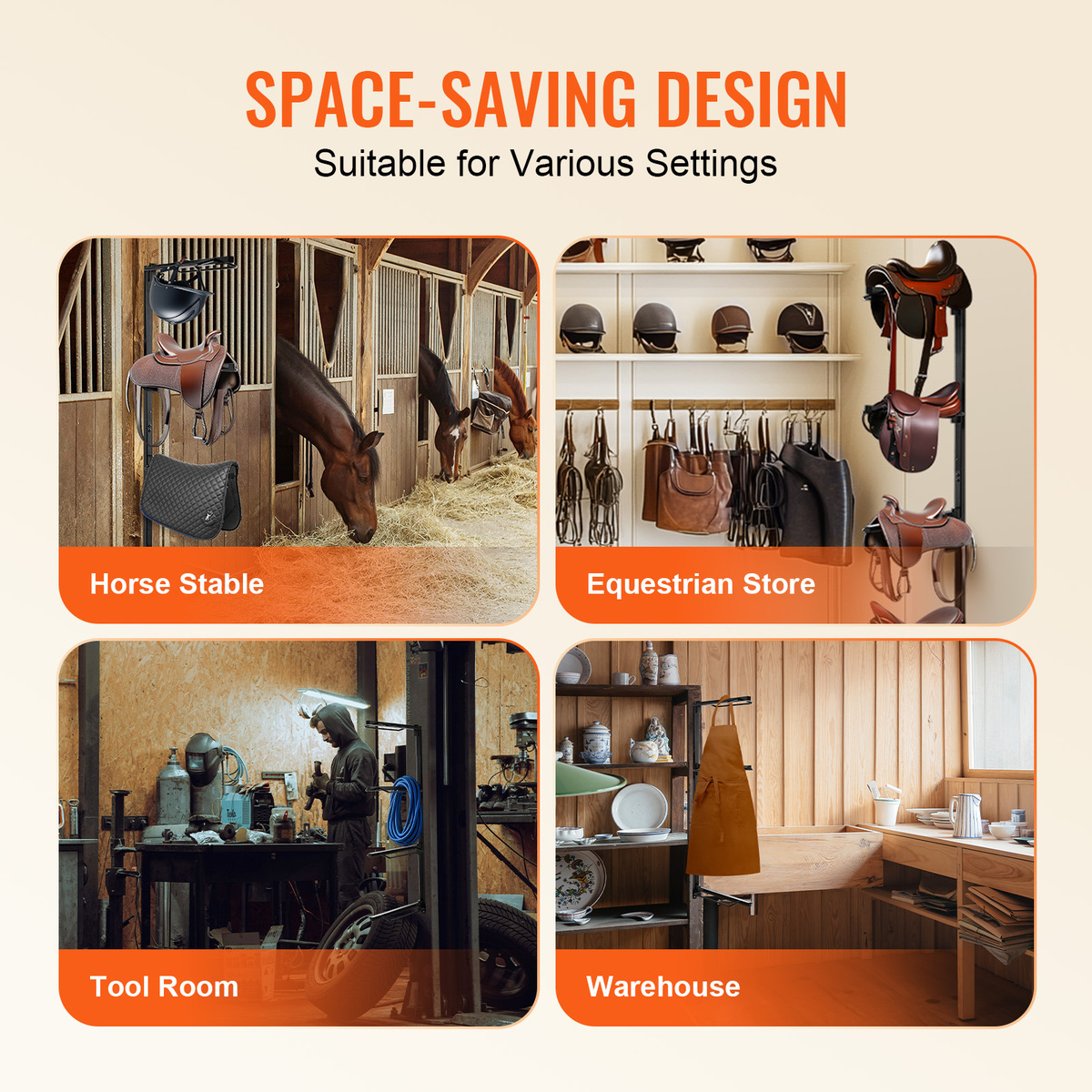 VEVOR Wall Mount Saddle Rack, 24 x 7 x 52 in, Four Tiers Saddle Storage Rack