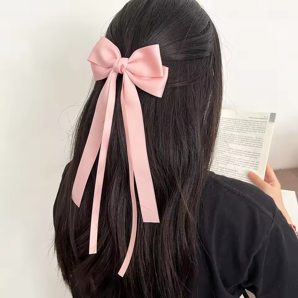 Upgrade your hairstyle with this Ribbon Bowknot Hair Clip For Women Girls, Double Bow Long Tassel Barrette - Pink – a trendy and practical hair accessory for women.