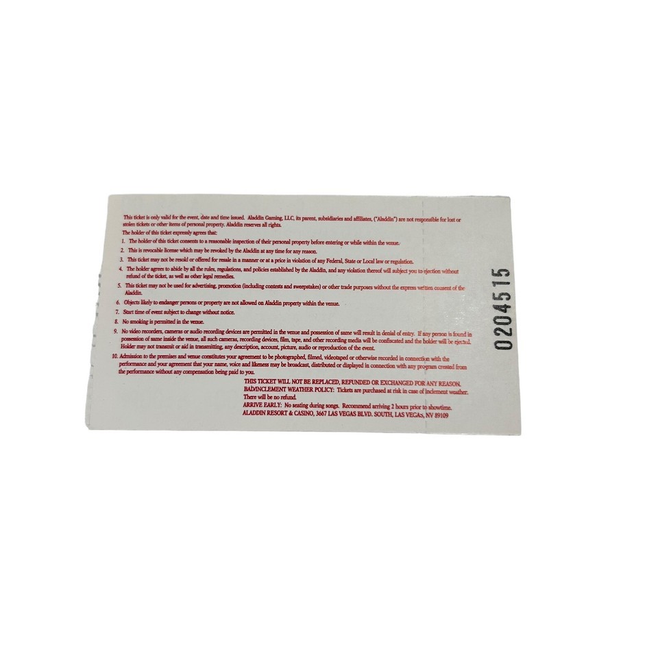 BROADWAY AT THE ALADDIN TICKET STUB ALADDIN THEATRE LAS VEGAS OCT. 13, 2001 RARE