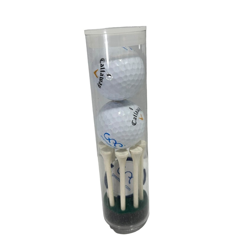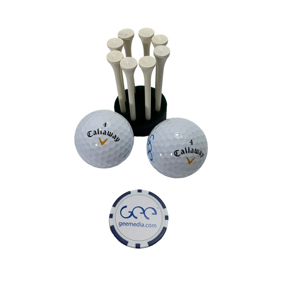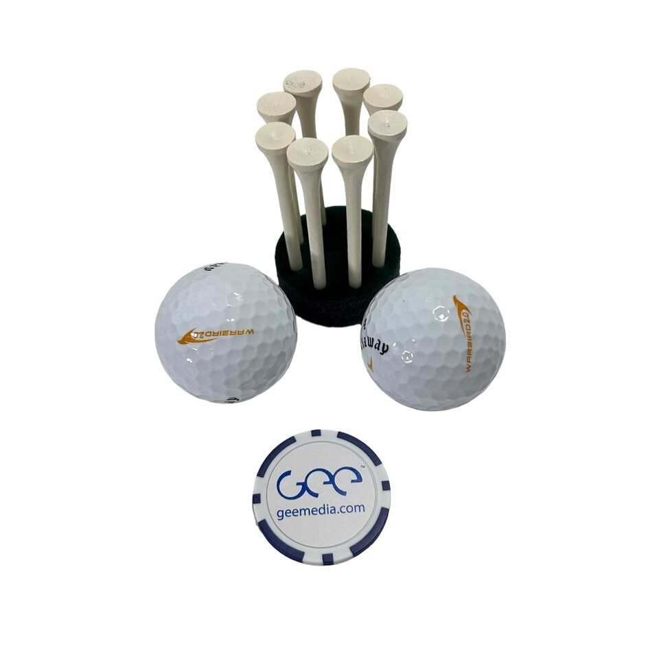 Enhance your golf game with this Callaway Warbird 2.0 Golf Ball Gift Set. The set includes two golf balls a tee marker and a poker chip personalized with Geemedia promo on it. The set is personalized and branded by Geemedia, making it a great gift for any golf enthusiast.