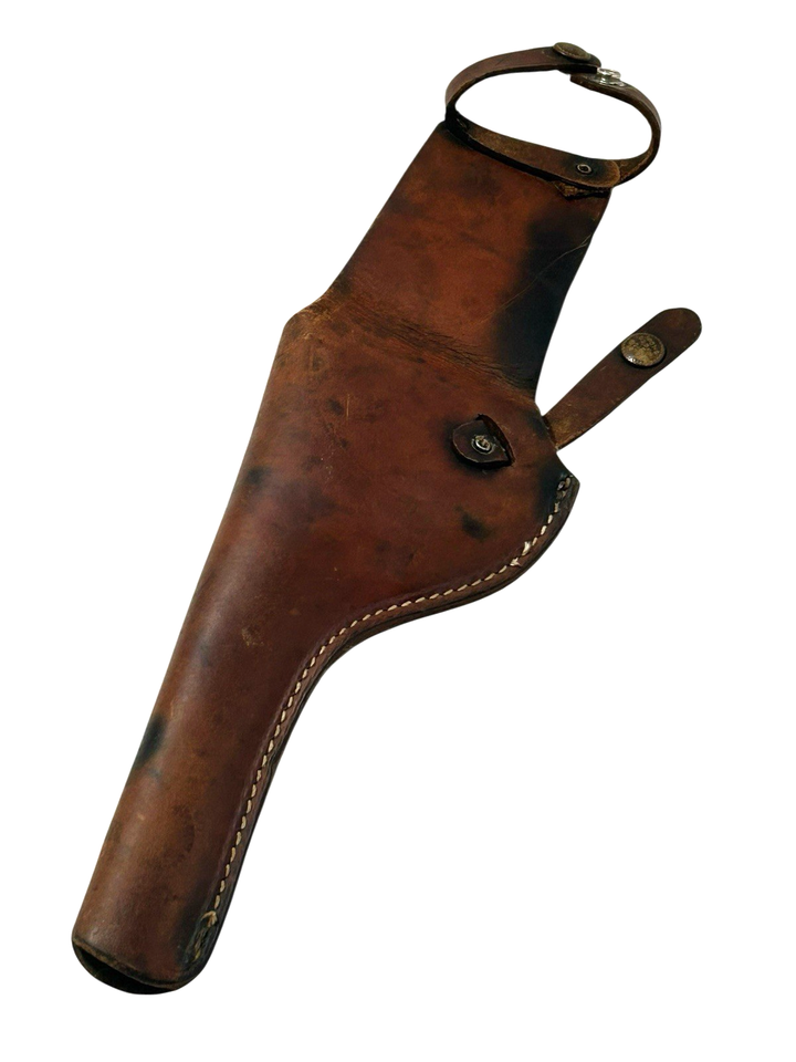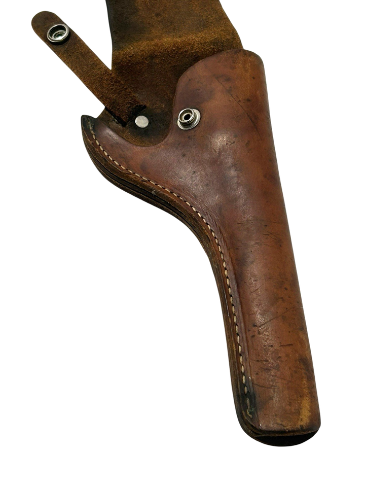 Vintage Brauer Bros Genuine Brown Leather Revolver Holster Engraved Buttons