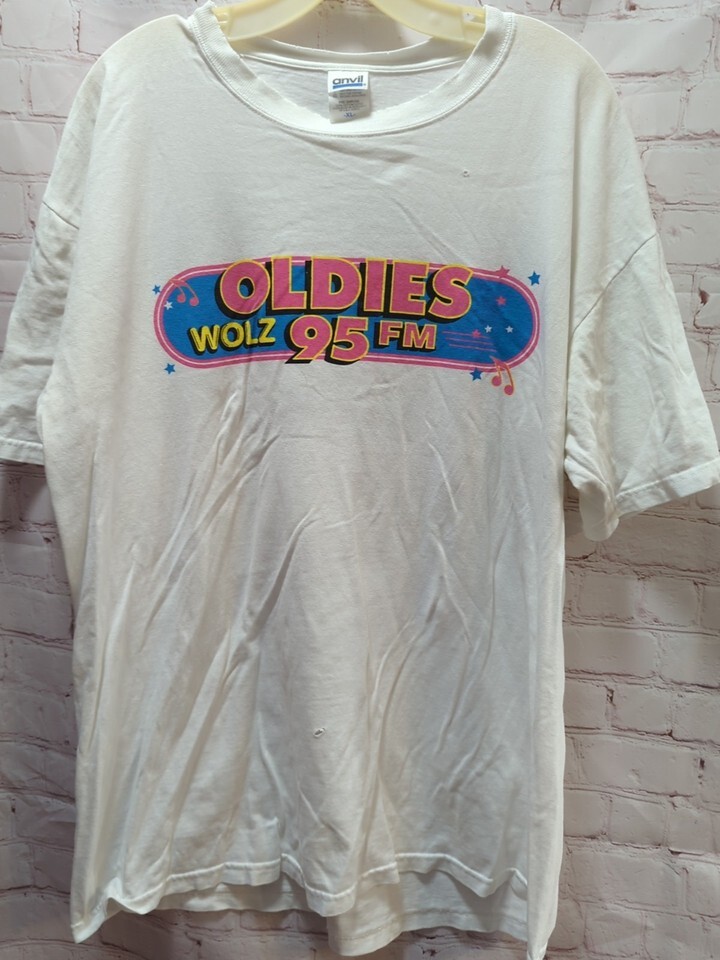 VINTAGE WORN TORN Oldies Radio station WOLZ 95 FM t- shirt XL for project