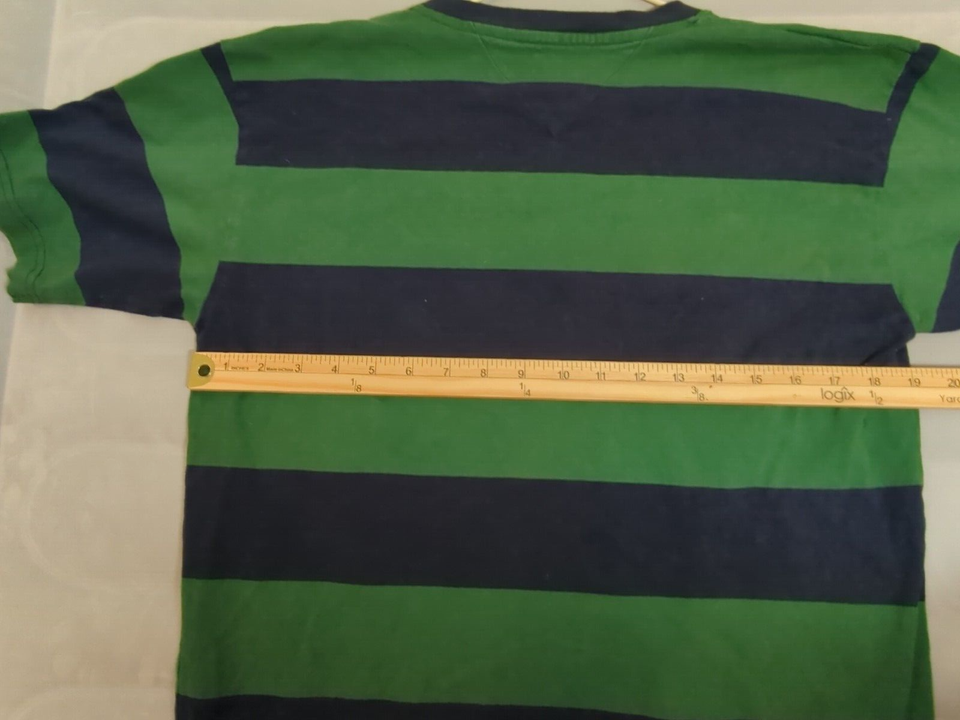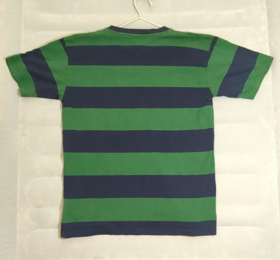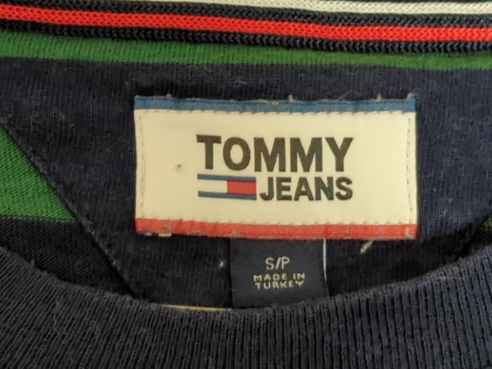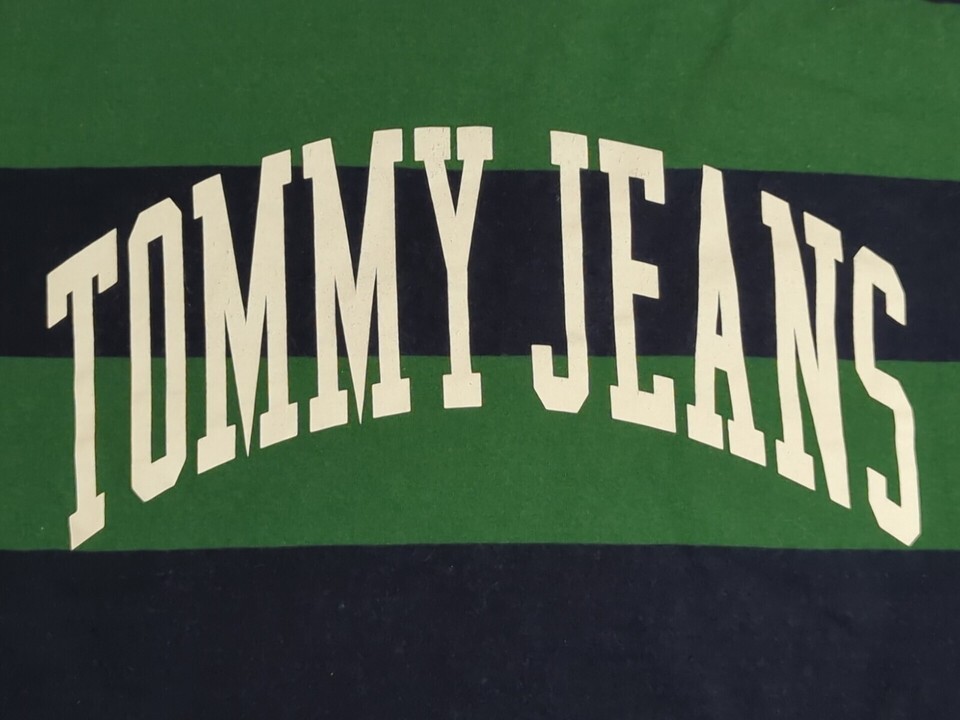 Tommy Jeans Men's t-shirt S small blue green wide stripe retro style spell-out