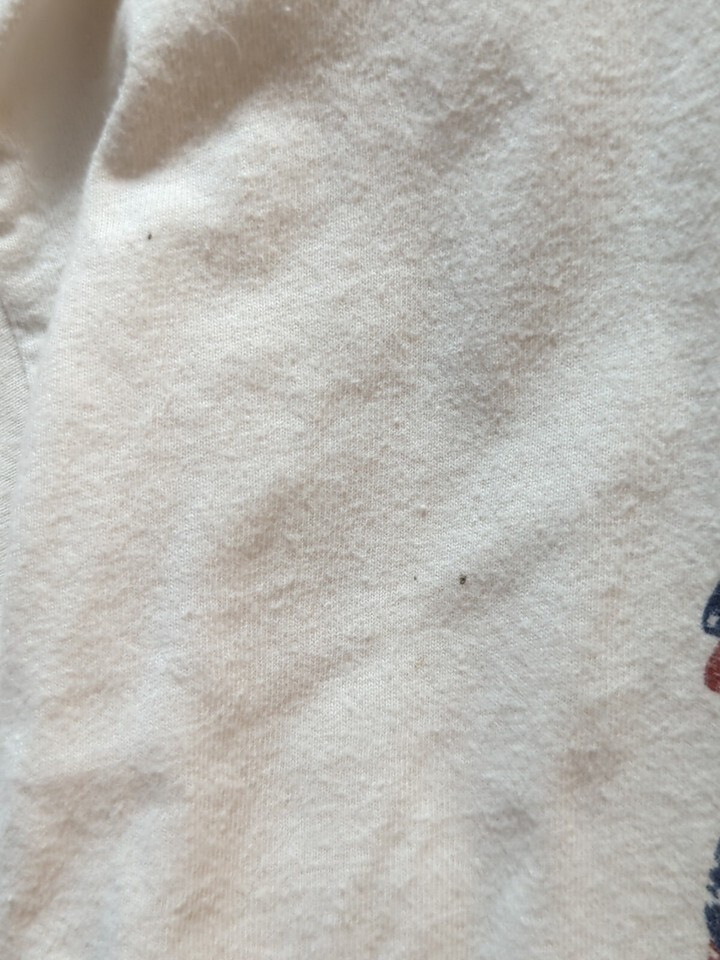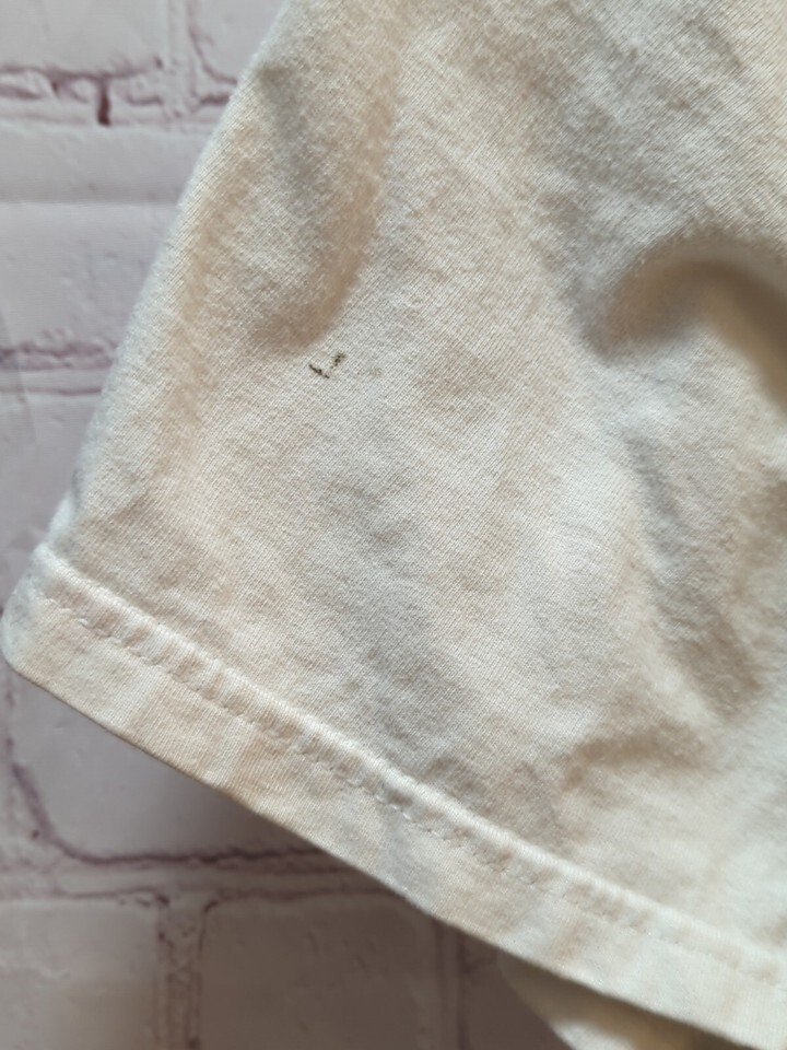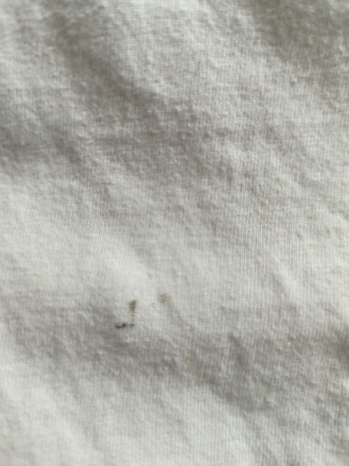 It has wash wear and is white, so there is some discoloring on the neckline and there may be faint spots, but I am not seeing any