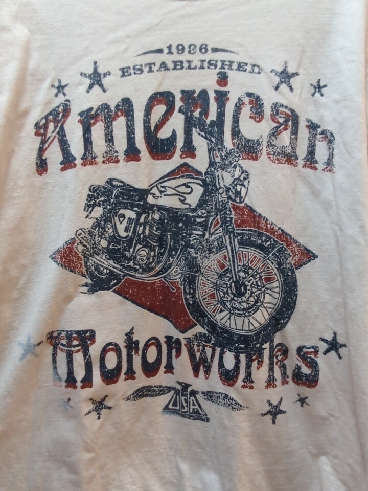 Hanes Men's Beefy T shirt XL FLAWS American Motorworks red white blue colors ran