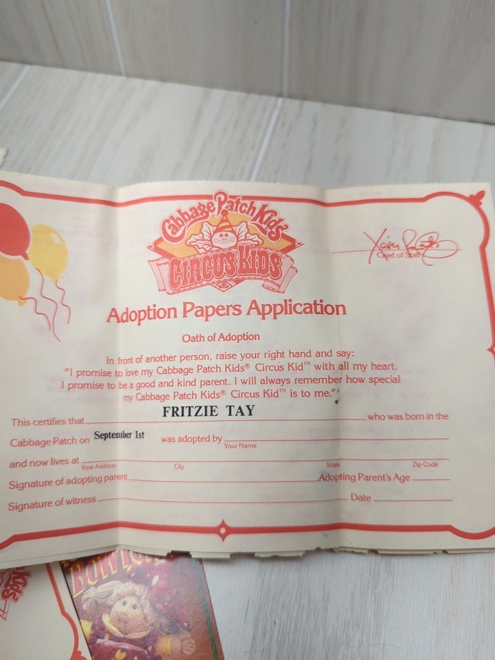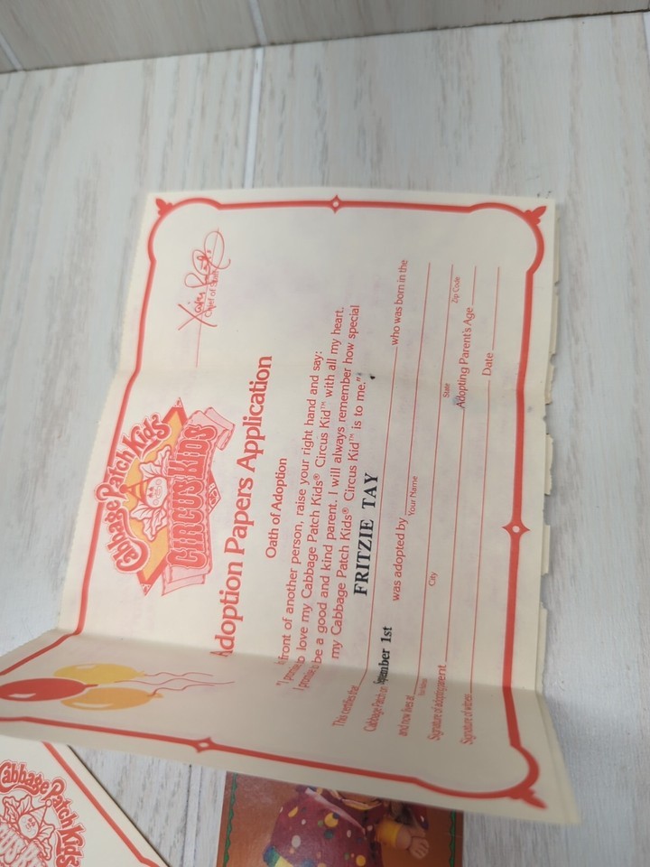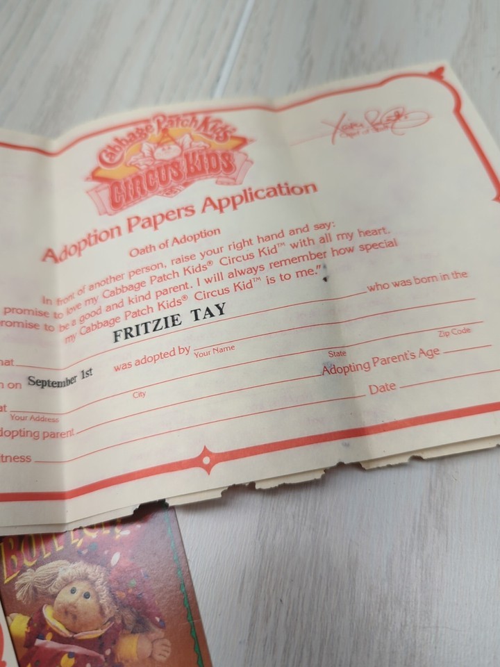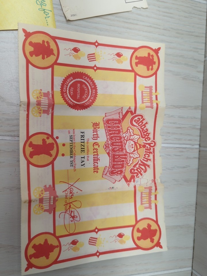 Cabbage Patch Kids 1986 vintage Circus Kids Doll birth certificate FLAWED Fritzi