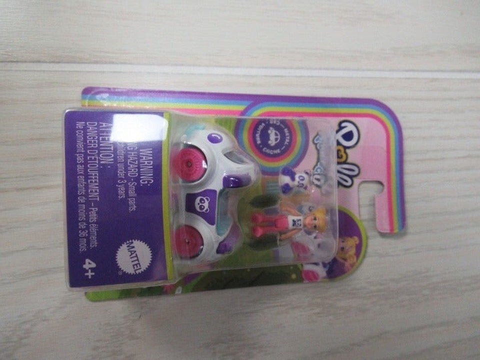 Polly pocket mini white purple panda car pet set girl doll blonde hair