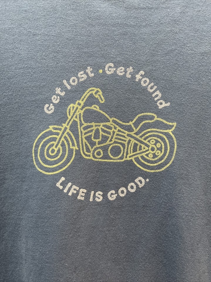 Life is Good XL Men long sleeve FLAW blue t shirt motorcycle Get Lost Get Found
