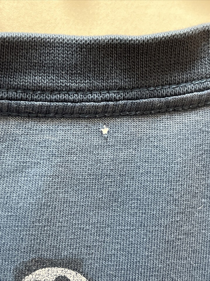 Hole in back near neckline from tag barb and collar seems slightly stretched, as do the sleeve cuffs