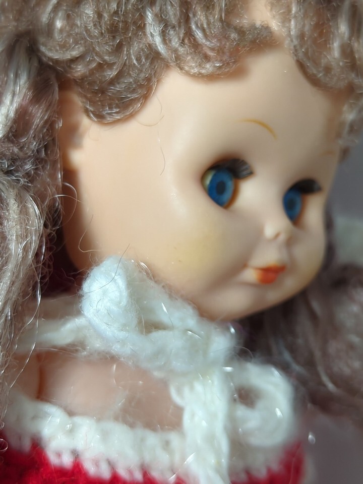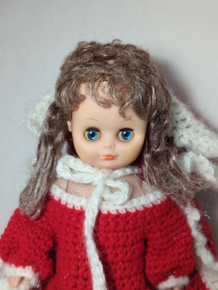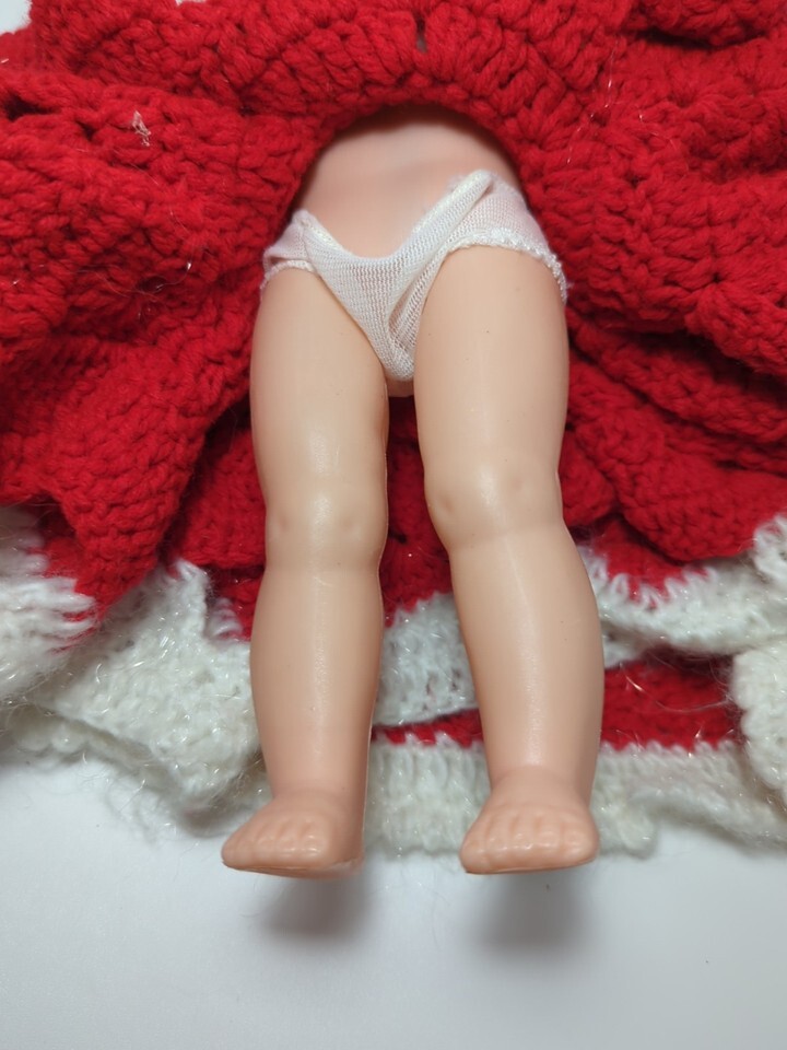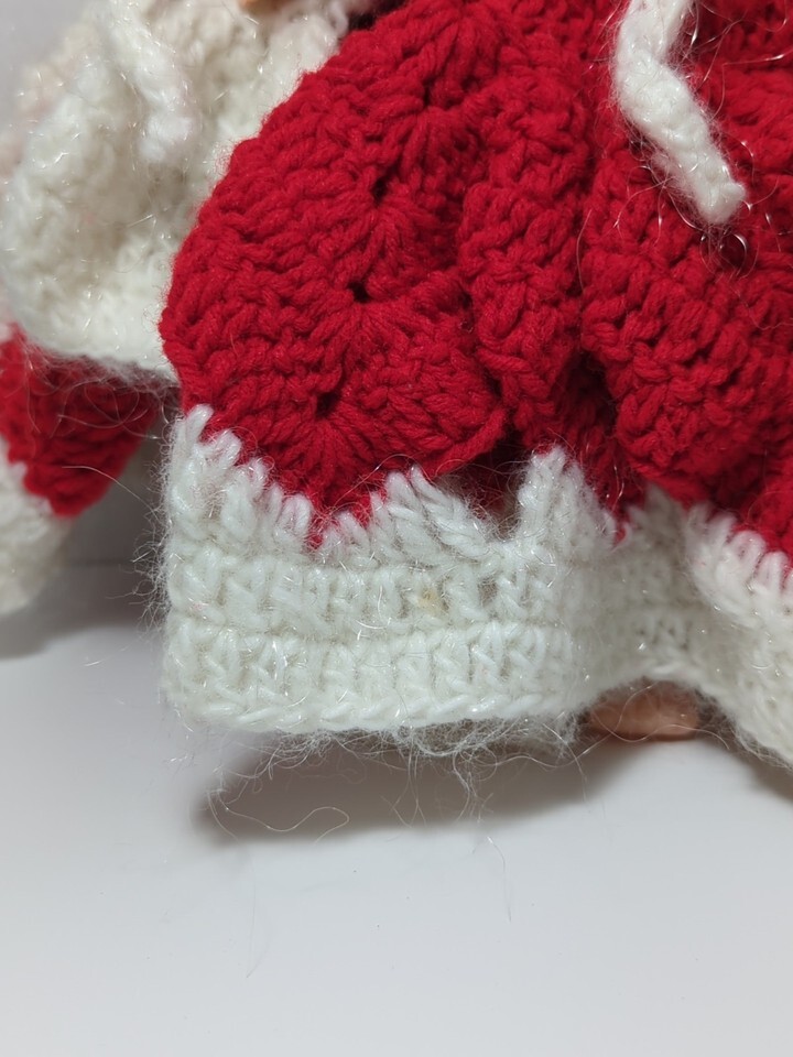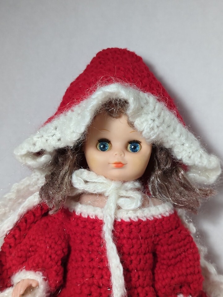 Homemade Crocheted Little Red Riding Hood Cape Dress on 13" Doll Vintage READ