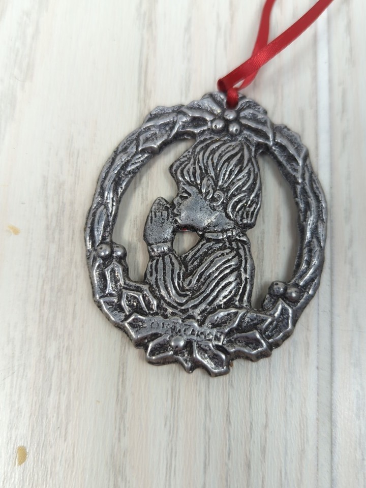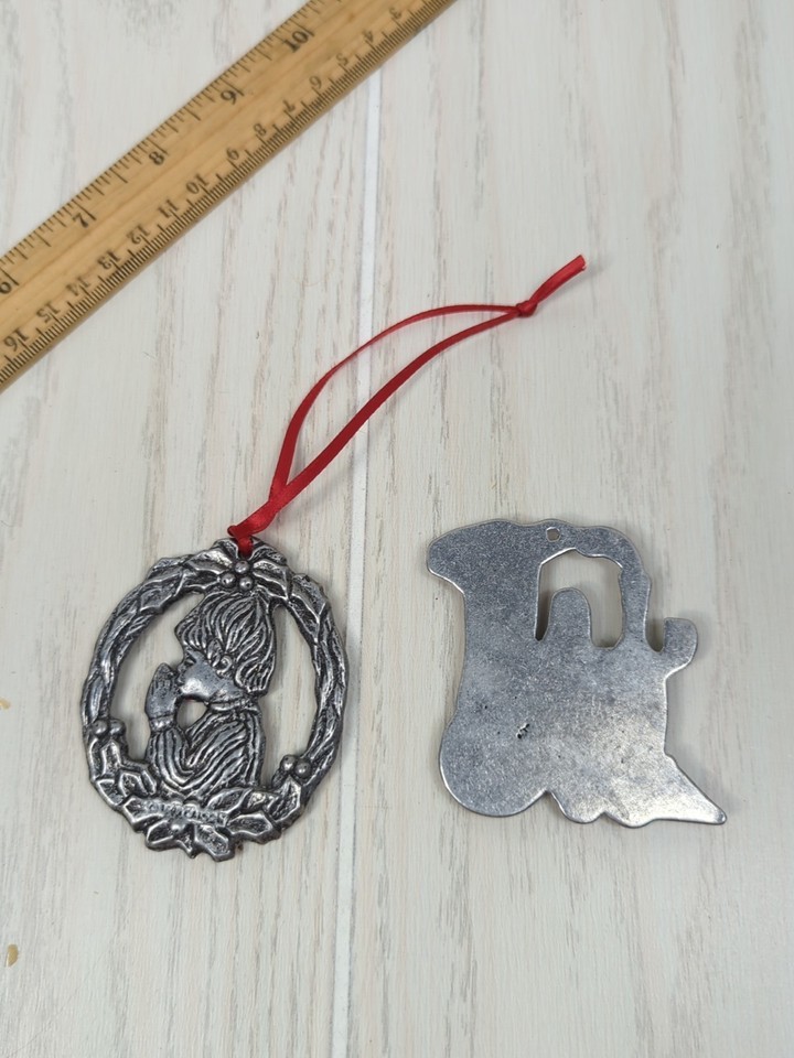 Pewter Train engine Praying boy child Christmas Tree Ornaments set lot 2