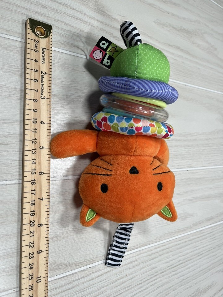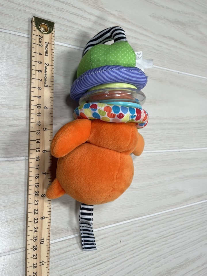 Kids Preferred cat plush rattle rings hanging crib baby toy orange multicolor