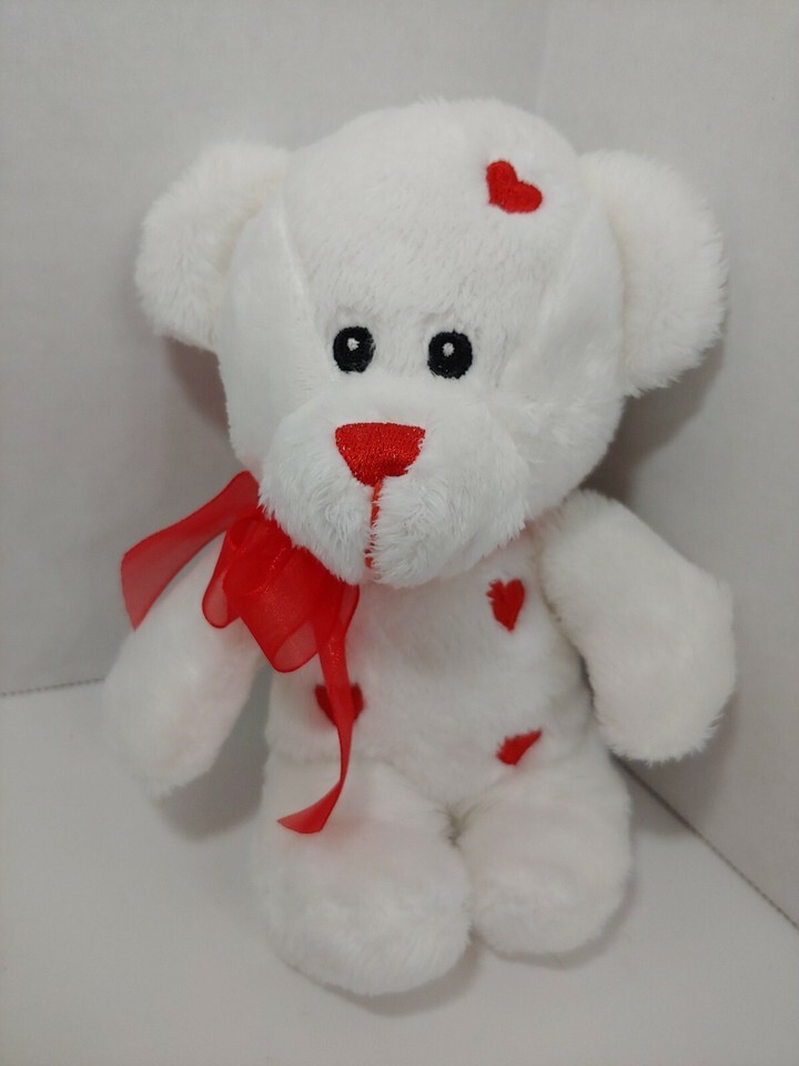 DanDee Plush white small teddy bear red embroidered hearts bow stuffed animal