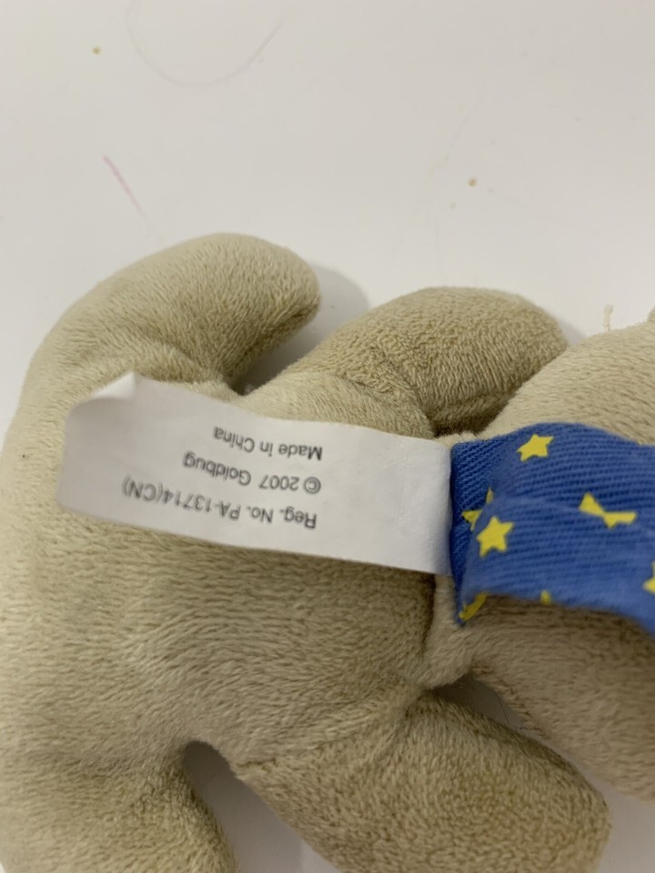 Goldbug mini teddy bear plush tan hanging baby crib toy blue yellow stars 2007
