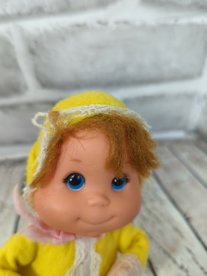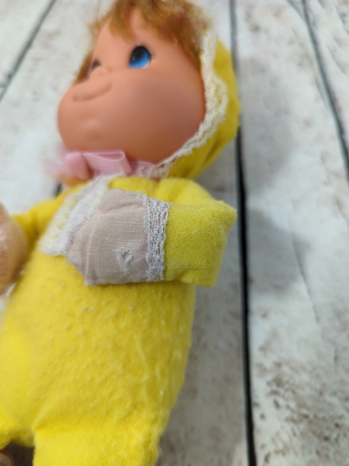 Vintage 1970 Mattel Itsy Bitsy Baby Beans Doll Yellow 8" FLAWS for repair