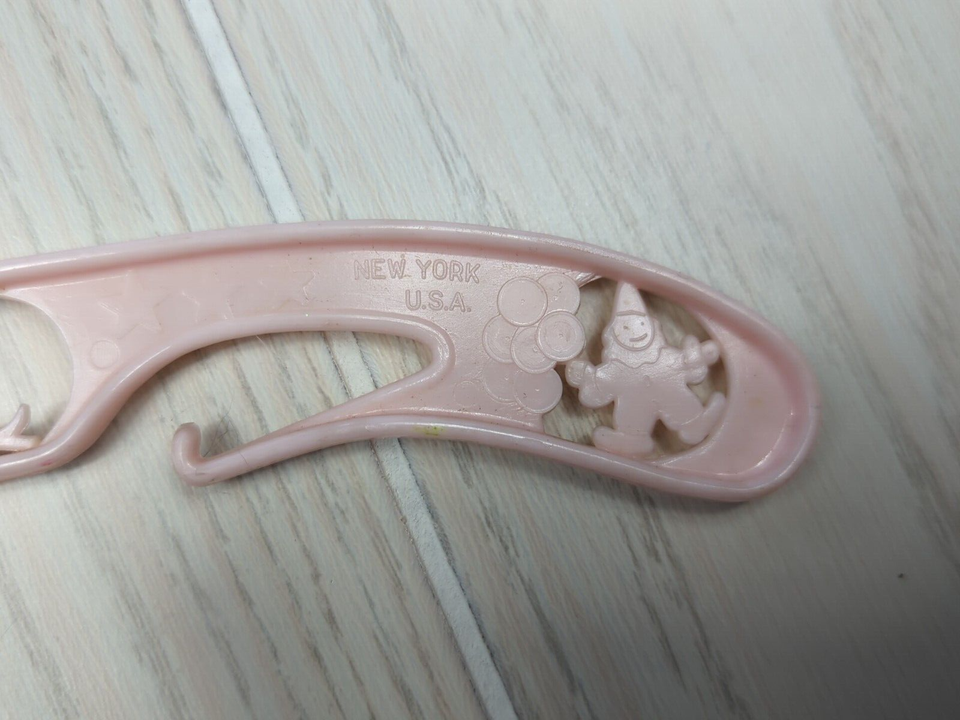3 vintage baby children's clothing hangers pink circus blue bunnies plastic
