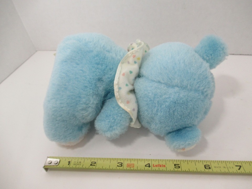 Russ Baby plush blue teddy bear rattle polka dot ears clown collar vintage