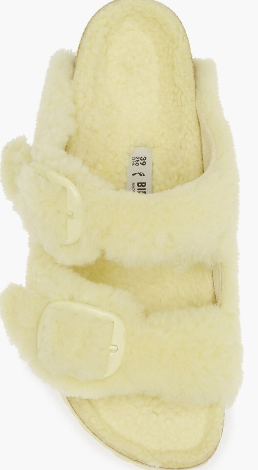 Birkenstock Arizona Genuine Yellow Shearling Cozy Dual Buckle Slides!!(sz 9)40