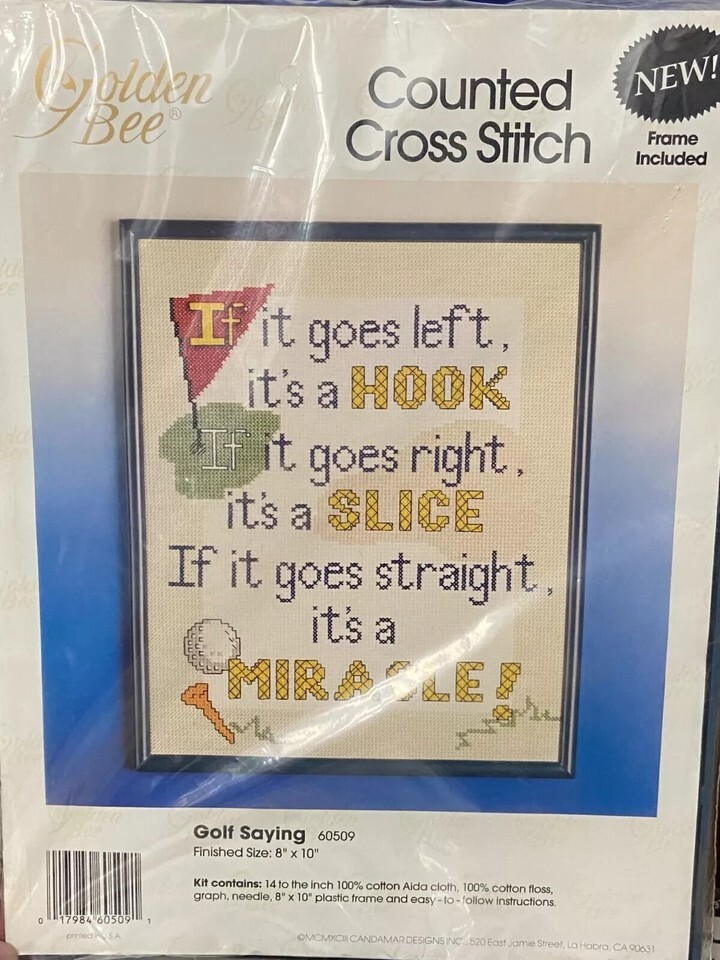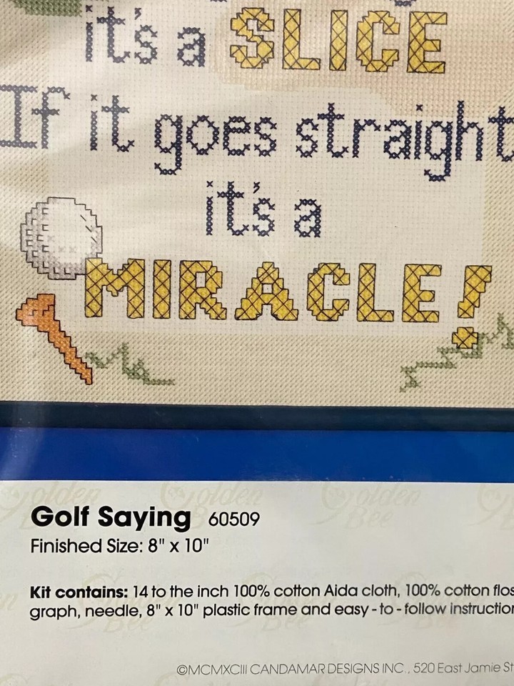 1993 Golden Bee Counted Cross Stitch Golf Saying w/Frame Included *NEW* ff1