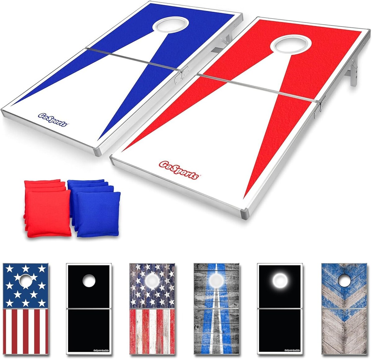 4 x 2 ft Regulation Size Aluminum Cornhole Game Sets ? Choose LED Lights or Standard - Set Includes 2 Foldable Boards, 8 Bean Bags, Rules