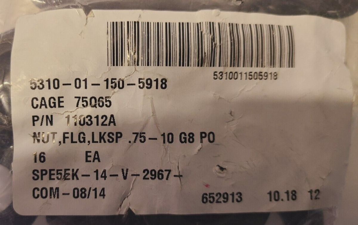 16 Quantity of Lock Nuts FLG LKSP .75-10 G8 P0 | 110312A | CAGE 75Q65 (16 Qty)
