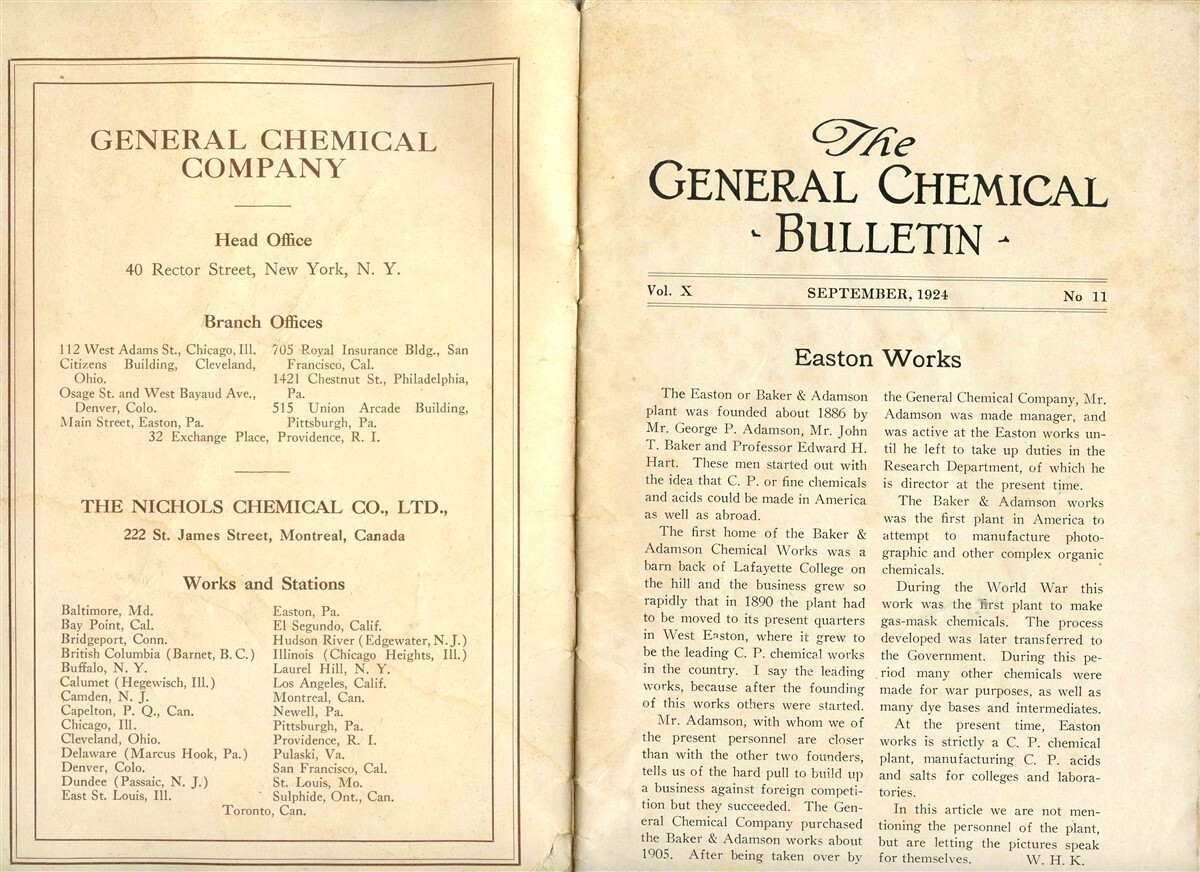The General Chemical Bulletin Easton Number September 1924 Employee Magazine