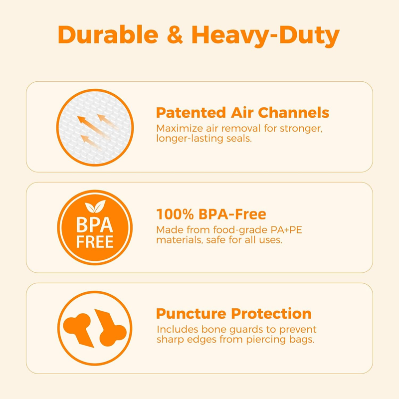 CUSTOMISED-SIZE FOOD VACUUM BAGS - work with all suction vac heat sealer, such as Food Saver, Seal a meal, Nesco, Weston, Cabela?s, Ziploc etc, you can make a customized-size vacuum bag in a few seconds.