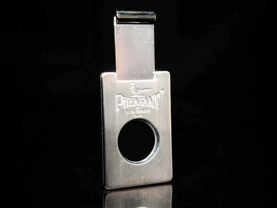 This Pheasant by R.D.Gomez stainless steel cigar cutter is a must-have for any cigar enthusiast. Crafted in Spain and brand new in box, it features vaquetilla beige leather for a luxurious touch. The precision blades ensure a clean cut every time, making it perfect for any occasion. The brand is well-known for producing high-quality cigar accessories and this cutter is no exception. It's a great addition to any collection or a thoughtful gift for a fellow cigar lover. Get yours now and enjoy a satisfying smoking experience.