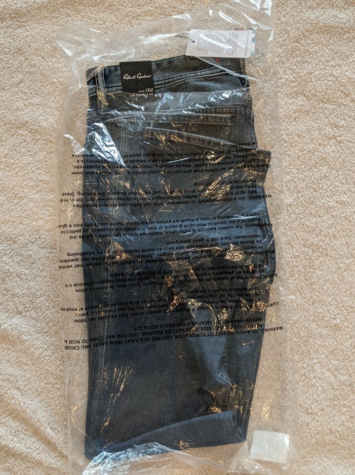 This is a new pair of Robert Graham Perfect Fit " Gander " Light Indigo Jeans. Waist 32" with 32" inseam . New in cello. We ship Worldwide fully insured.