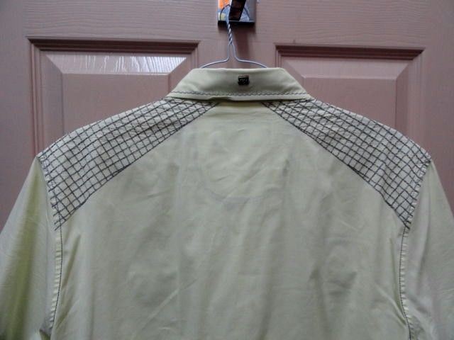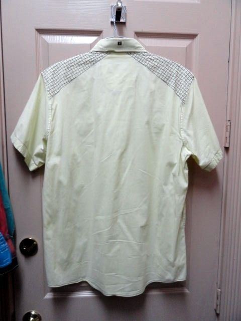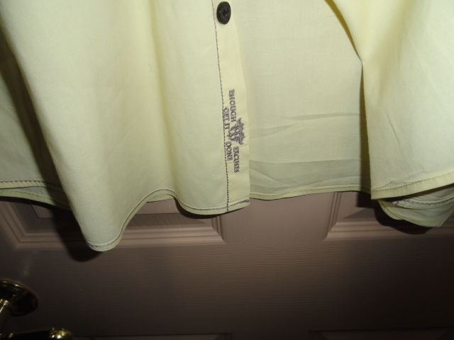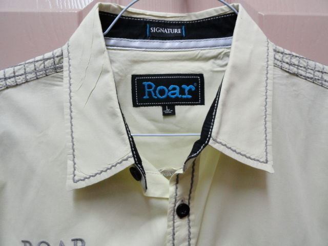 This is a preowned Roar Light Yellow Short Sleeve Large size Adult shirt. Has embroidered design front and back. Good condition. Hardly worn. No missing buttons or issues. Fresh Laundered. We Ship Worldwide fully insured.