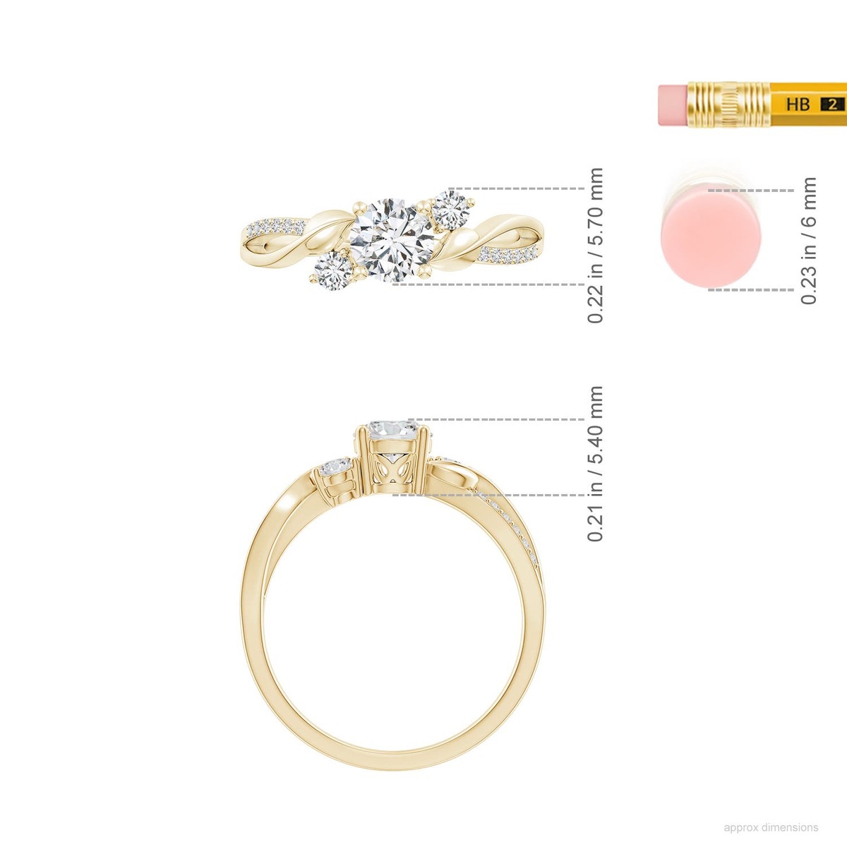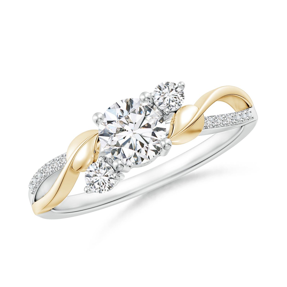 ANGARA 0.76 Ctw Three Stone Natural Diamond Twisted Vine Ring in 14K Solid Gold
