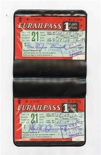 2 First Class 21 Day Eurailpass Cards in Plastic Holder 1970