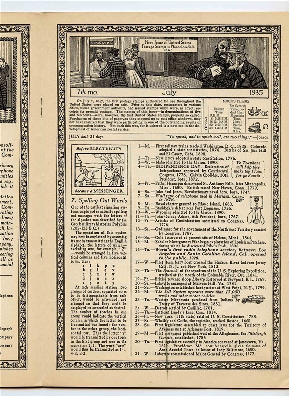 A 32 page illustrated almanac in card covers. American Telephone Telegraph Almanac 1935 Printed for Bell System Subscribers . Has an amazing amount of information, history, Rebus, Weather information,Moon Phases, Morning and Evening Stars. Bell System information and much more. Measures about 6 3/4" x 10" when closed.