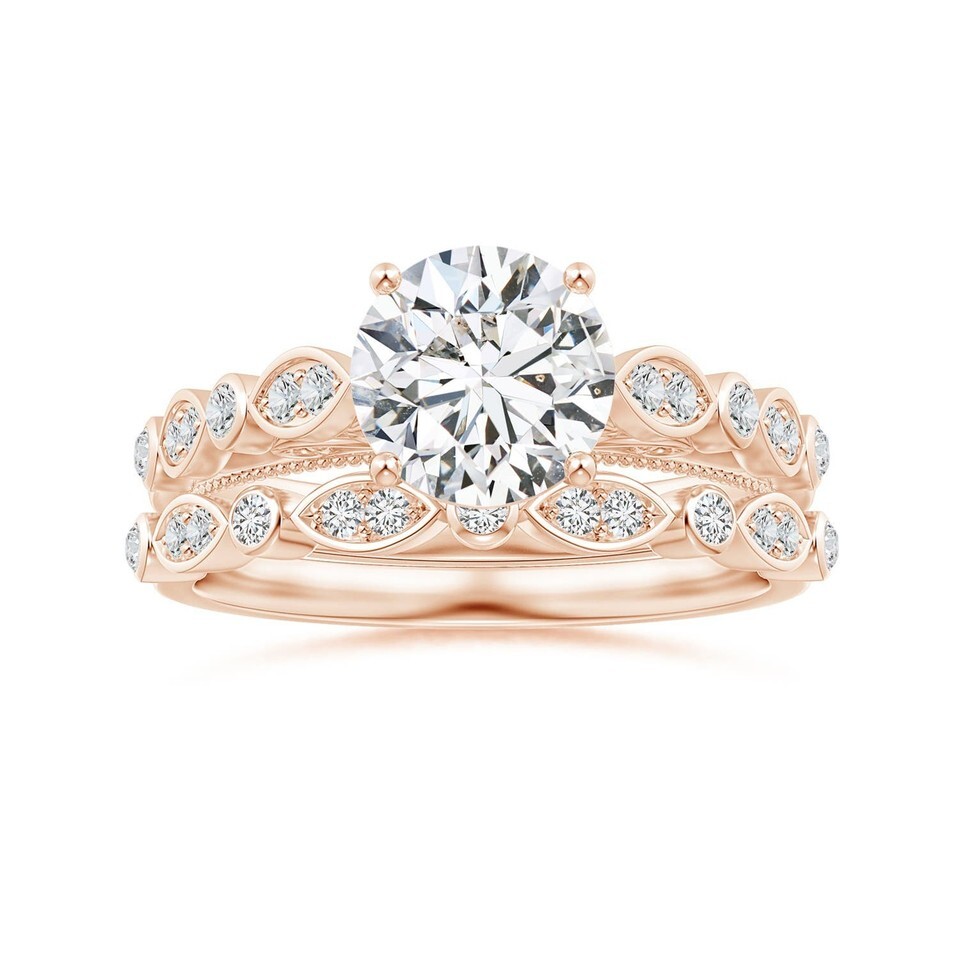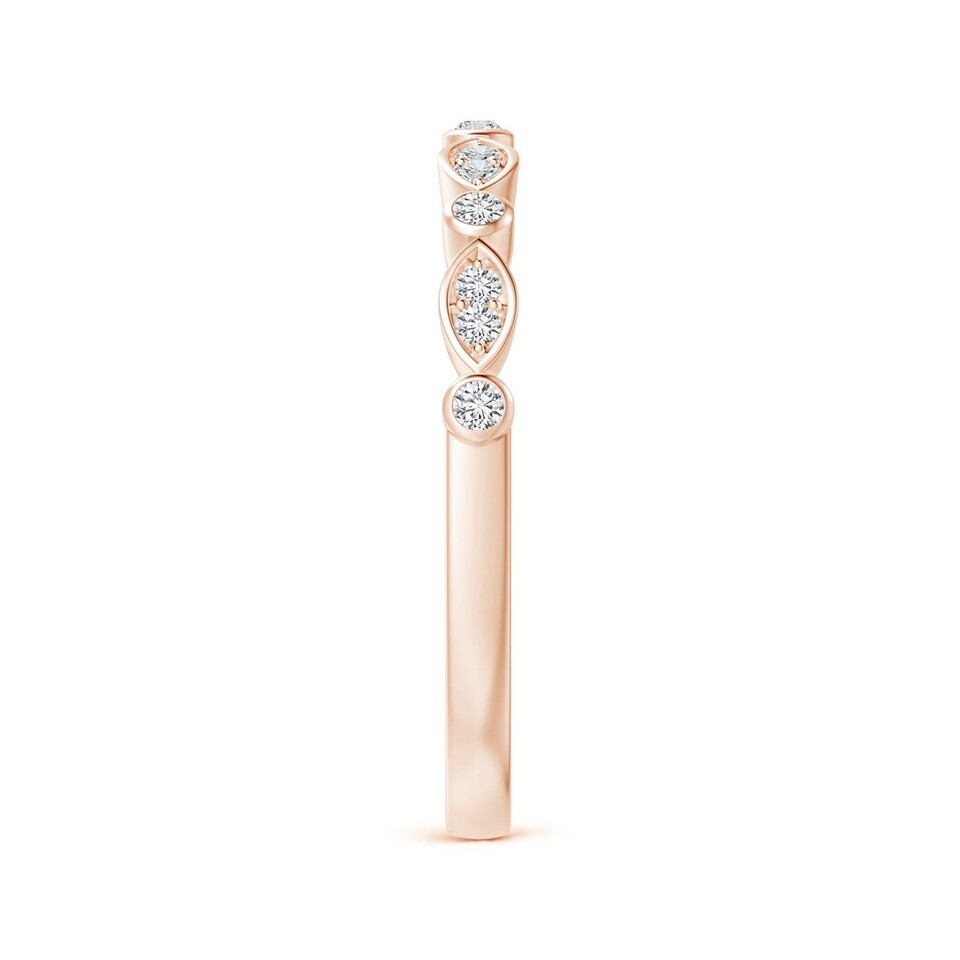 Bezel and pave-set diamonds adorn this elegant Aeon vintage inspired wedding band. Featuring a graceful marquise and dot pattern, this 14k rose gold wedding band is designed to complement.