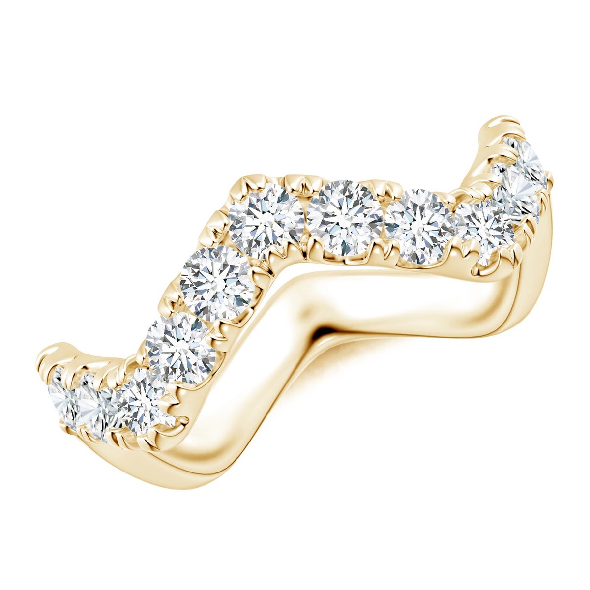 Angara Natural Round 1.24Ct Diamond Zig Zag Ring in 14K Solid Gold (2.9MM)