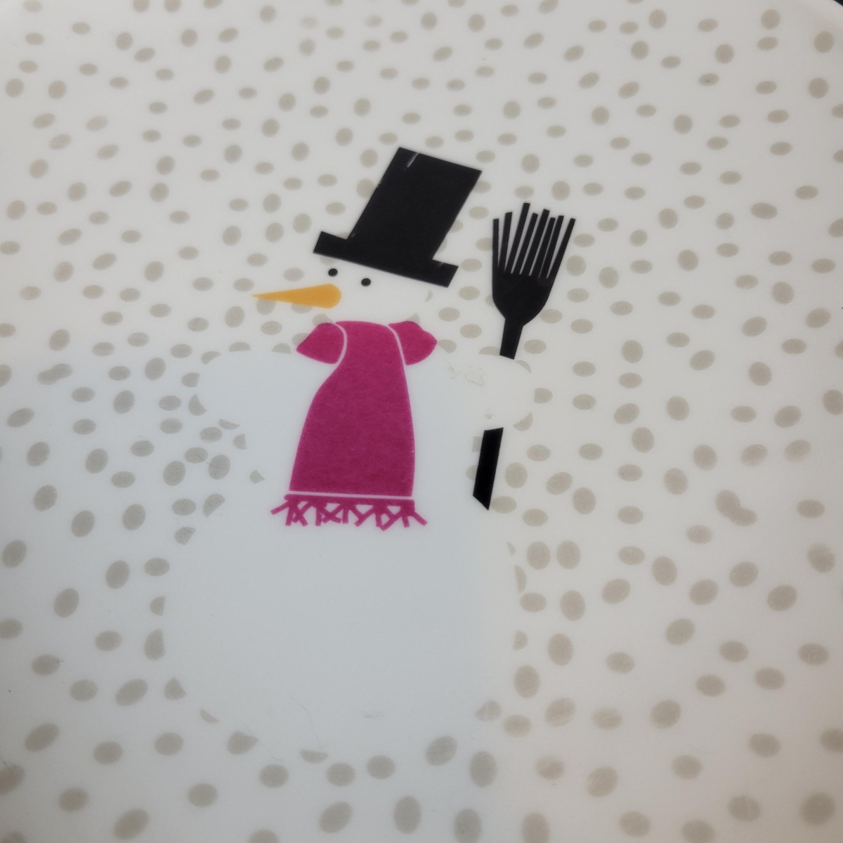 BODUM Glass 8.5" Winter Holiday Snowman Dinner Salad Plate ~ Christmas Snow