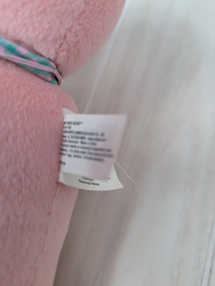 North American Baby Bare Bears plush jointed teddy bear pink green gingham bow