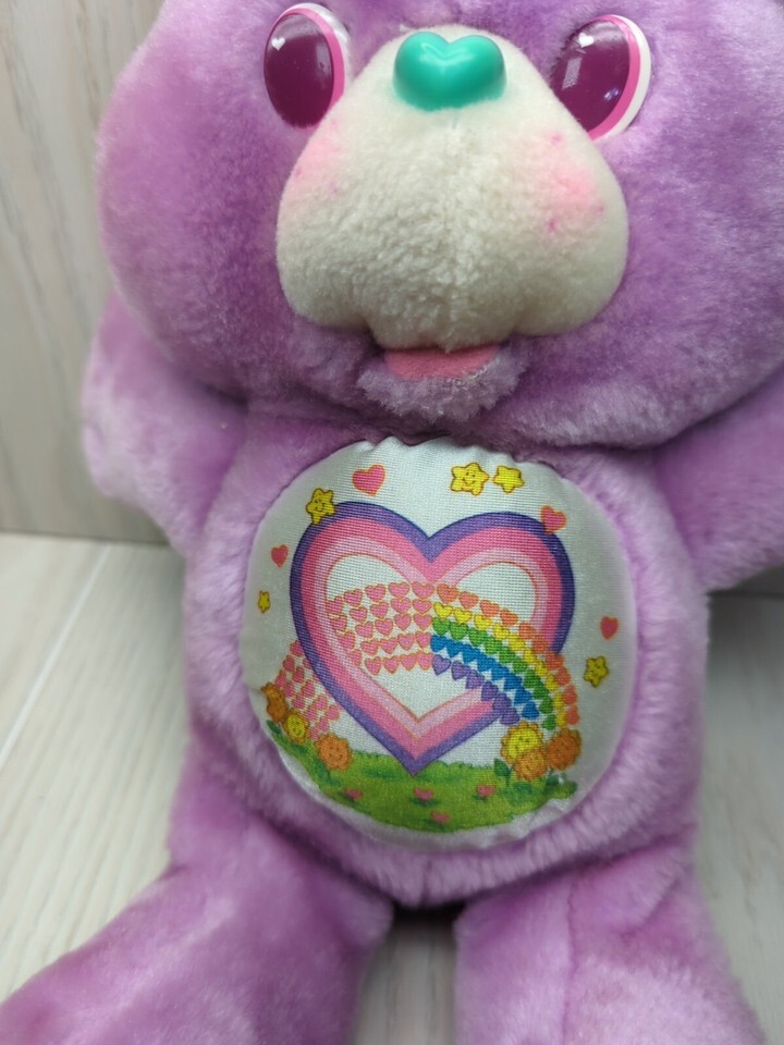 Care Bears Purple Share Bear 1992 rainbow hearts Green Ears Nose Pink Hair