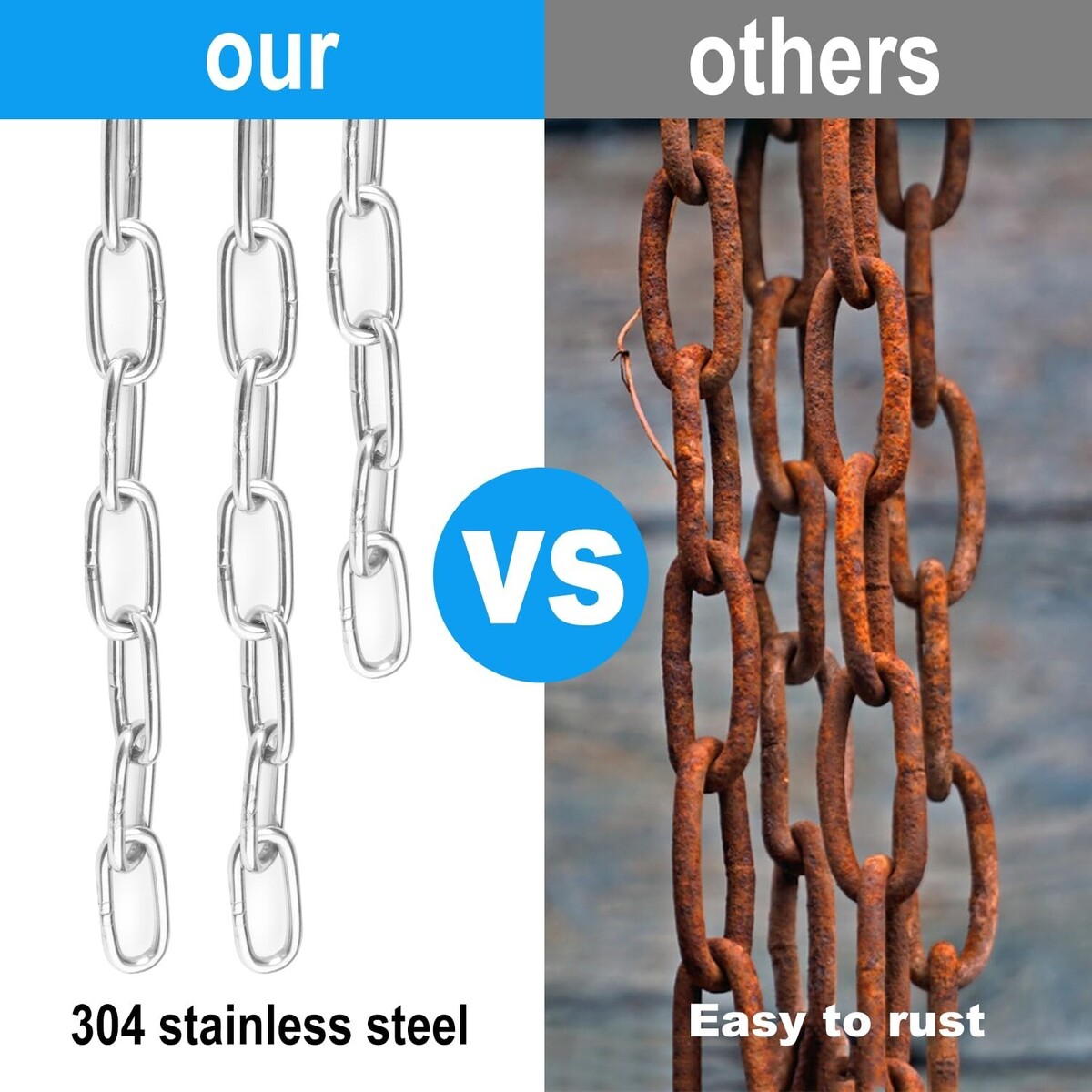 ?Rust and Corrosion Resistance?Made of high-quality 304 stainless steel, 's loop chains are rust and corrosion-resistant. They can withstand the toughest weather conditions without losing their strength or shape, ensuring a long-lasting, durable investment.