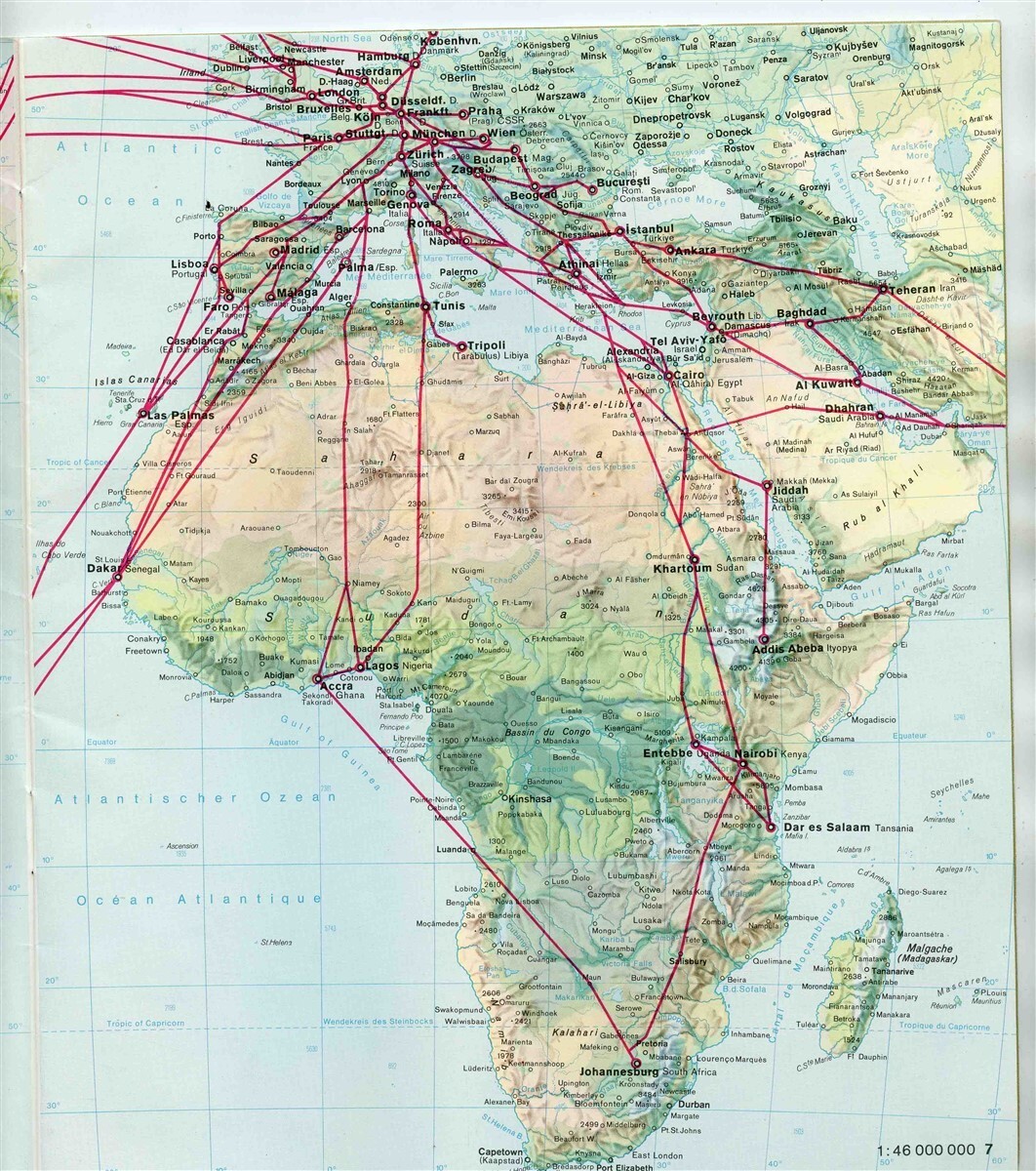 Lufthansa World Streckenatlas Route Maps 1970's German Airline